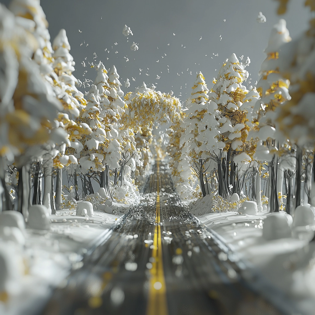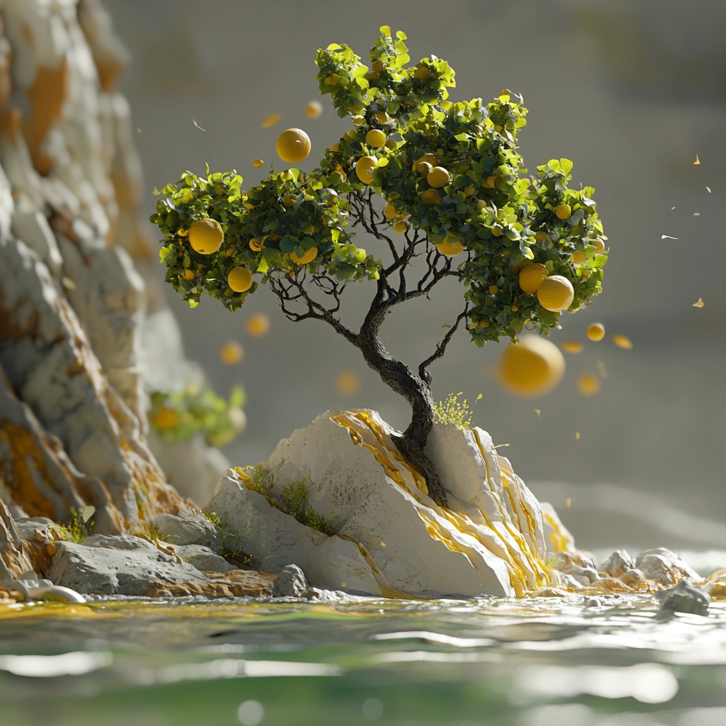 Contrasting light and shadow interplay with gray and yellow tones creating a vivid, lifelike presentation.