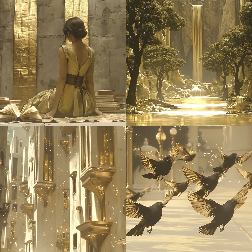 An orchestration of golden hues with soft beige undertones, creating a unified and luminous composition.