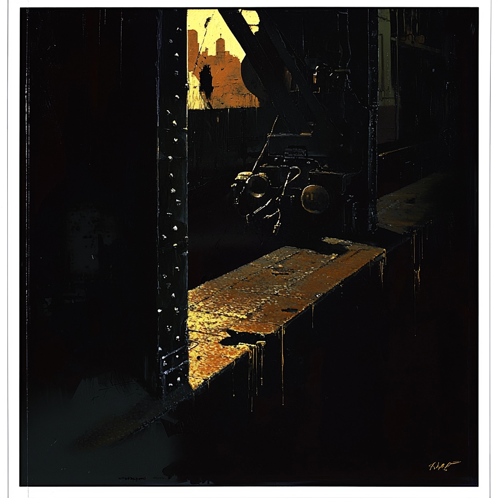 Interplay of shadow and warm tones creates depth through strong contrast.