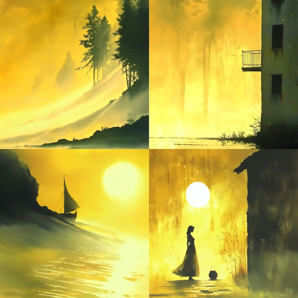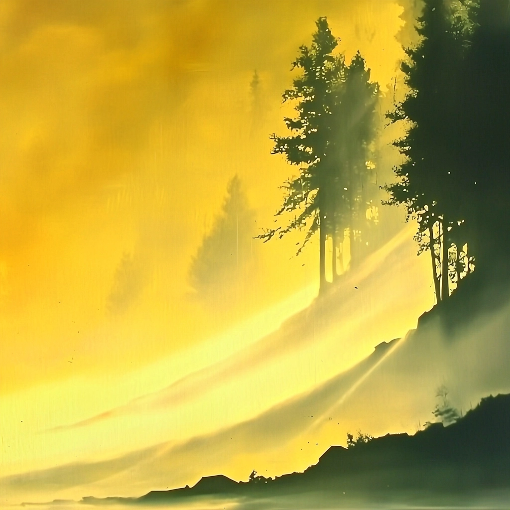 Rich lighting creates a warm glow, with precise shadows enhancing depth. The blend of colors suggests a dynamic atmosphere, while smooth textures evoke a sense of tranquility and fluidity.