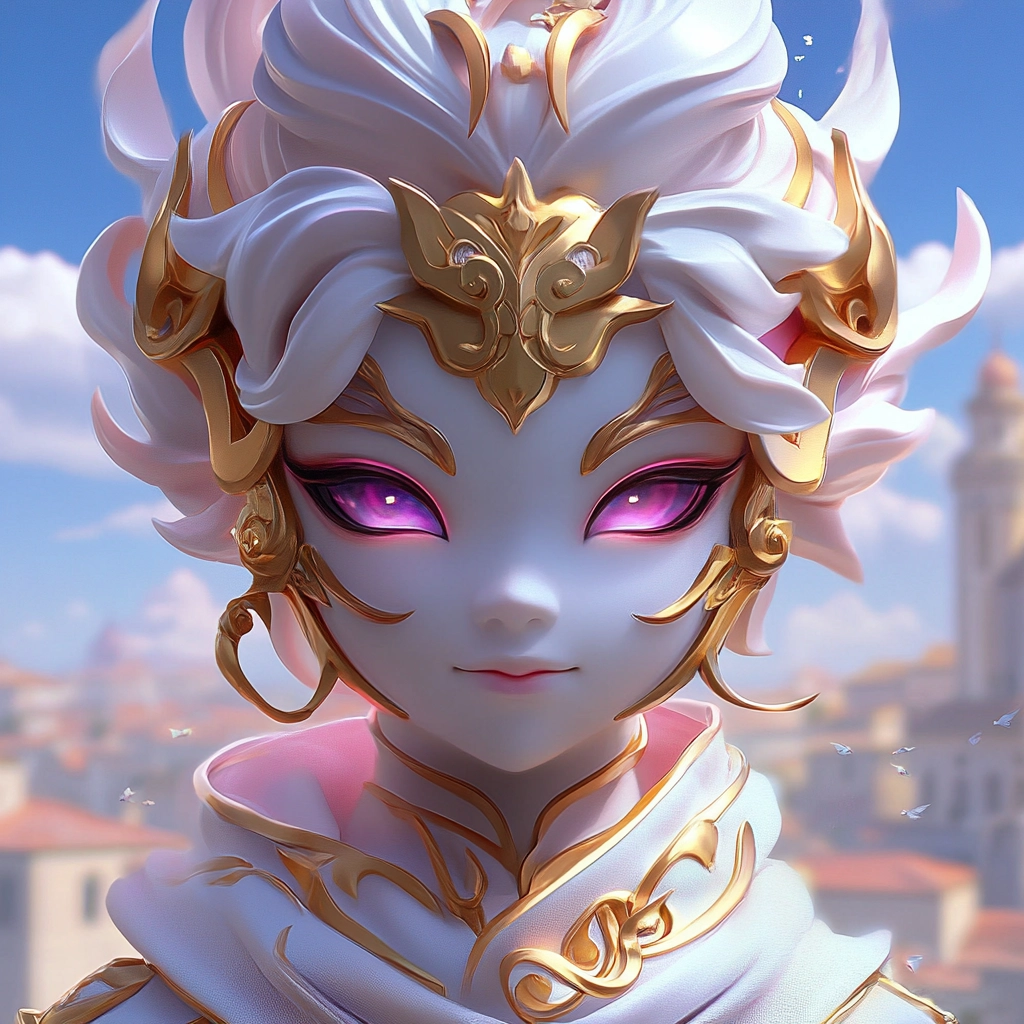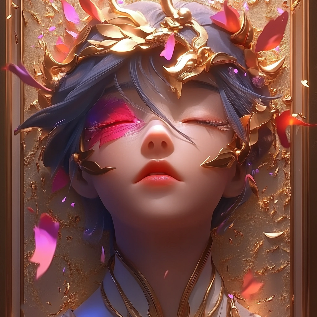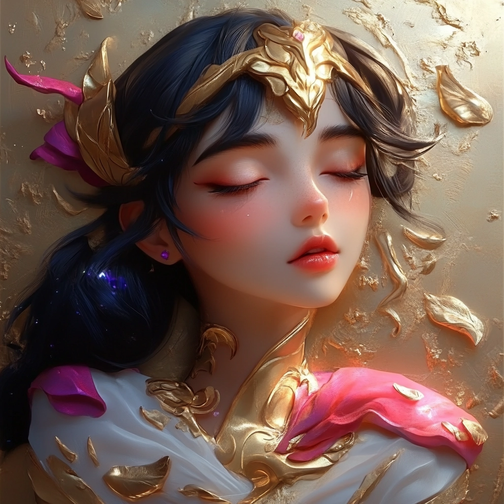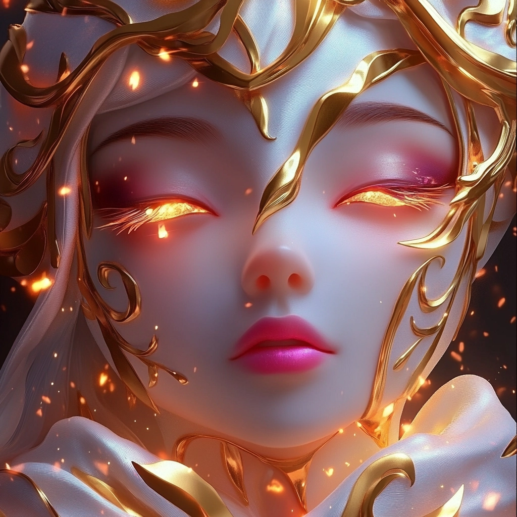 Golds are highly reflective, accentuating flowing forms. Gentle pink and white tones provide a serene backdrop with soft transitions. Spatial layering adds depth and dimensionality.