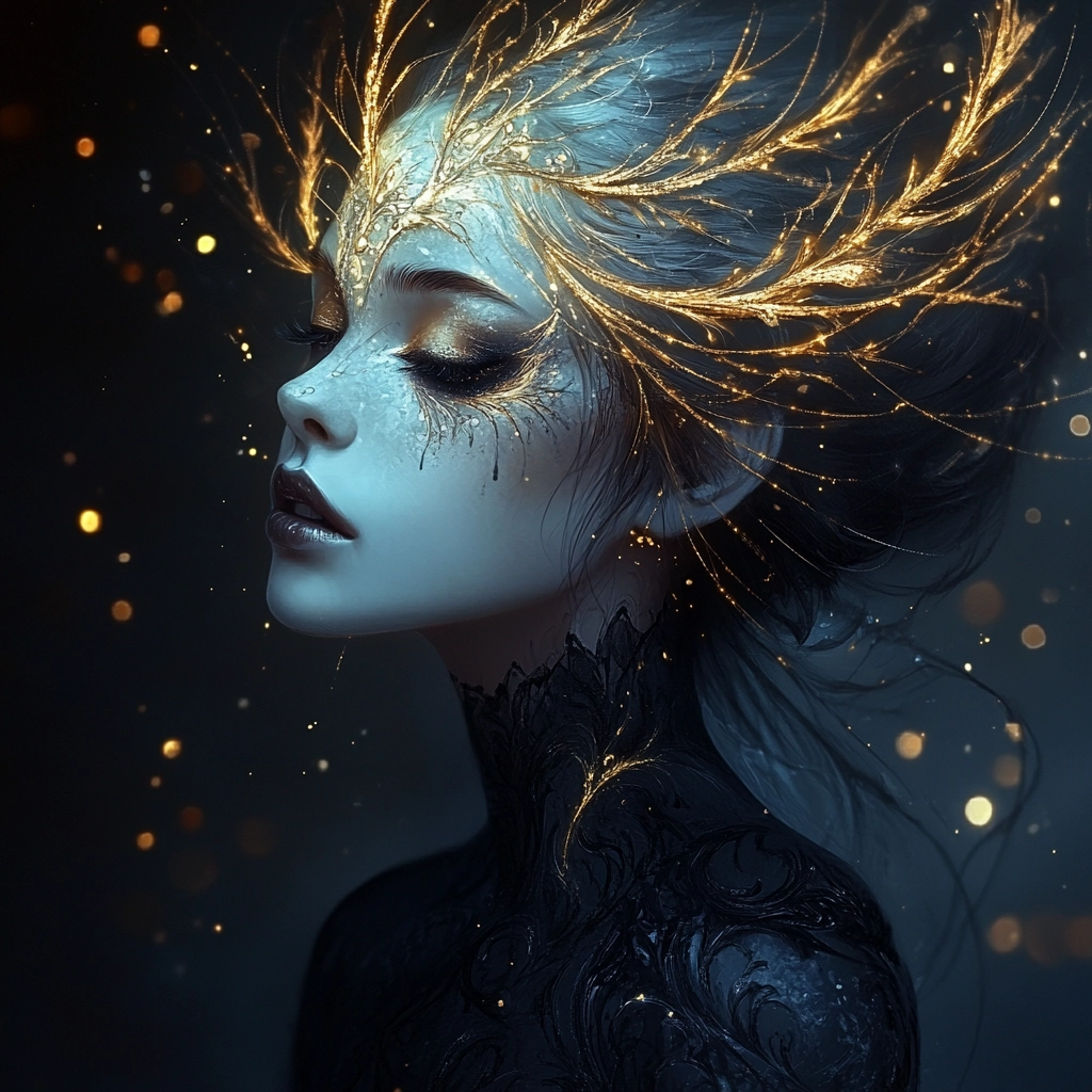 A dynamic interplay of dark blue and gold features captivating lighting effects and intricate textures.