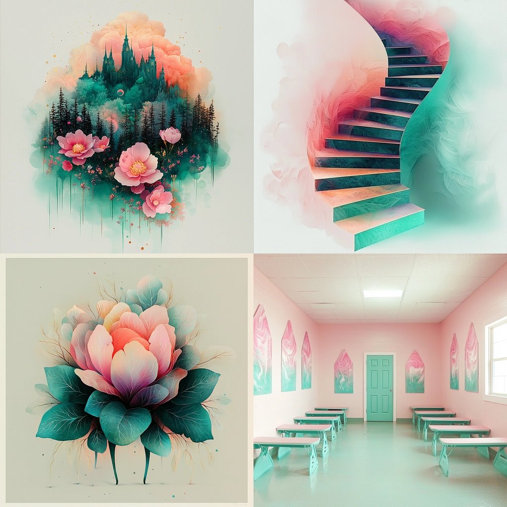 Sophisticated compositions blend gradual pastel hues and structured elements.