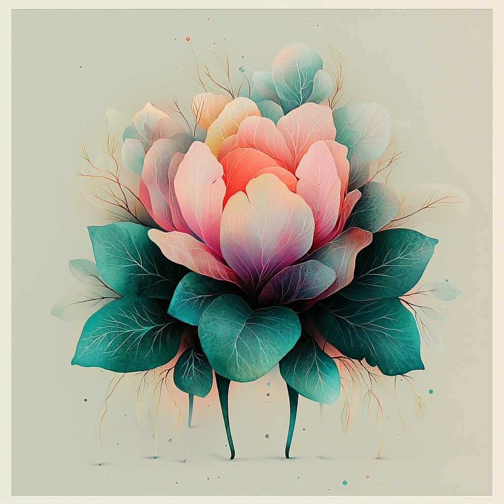 The lighting effects enhance subtle pastel gradients, drawing attention to intricate color transitions. There鈥檚 a gentle interplay between foreground and background, creating a balanced spatial sense. Textures are smooth with soft transitions, rendering a seamless look.