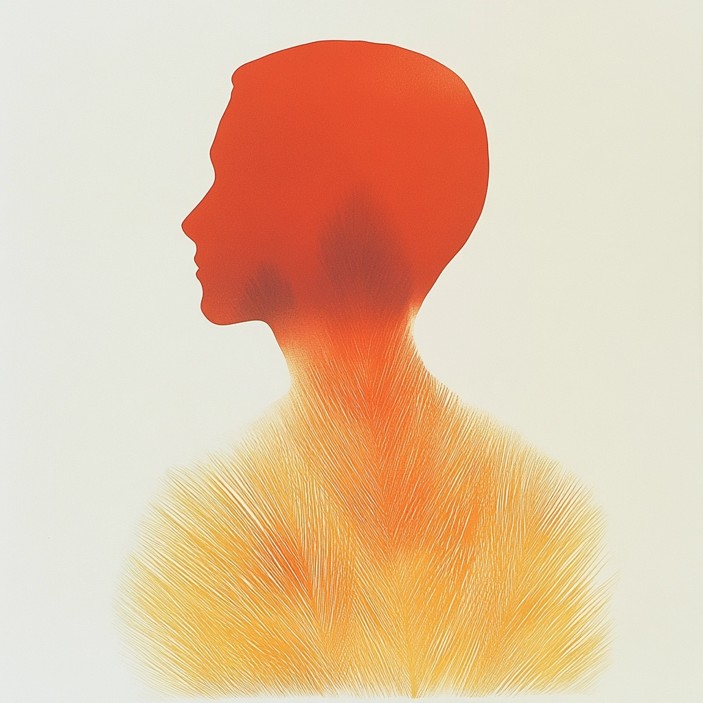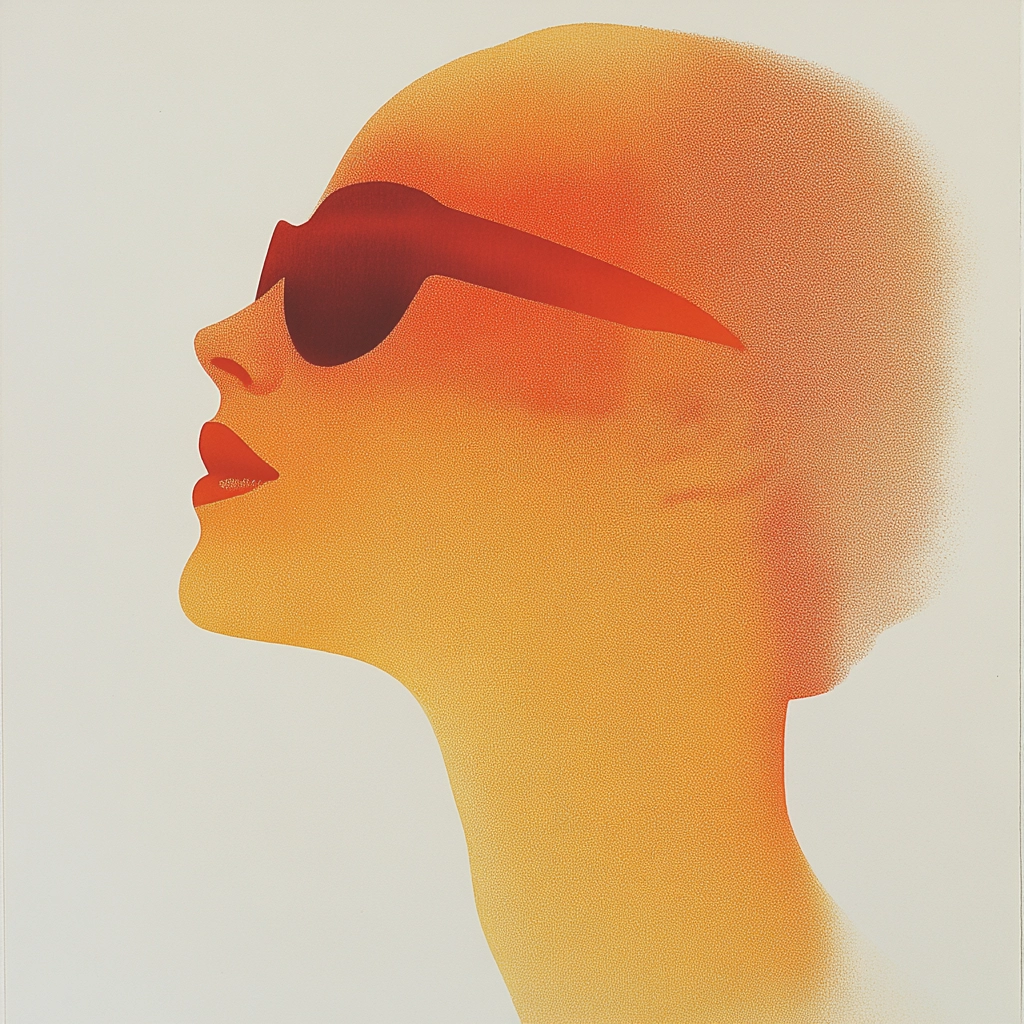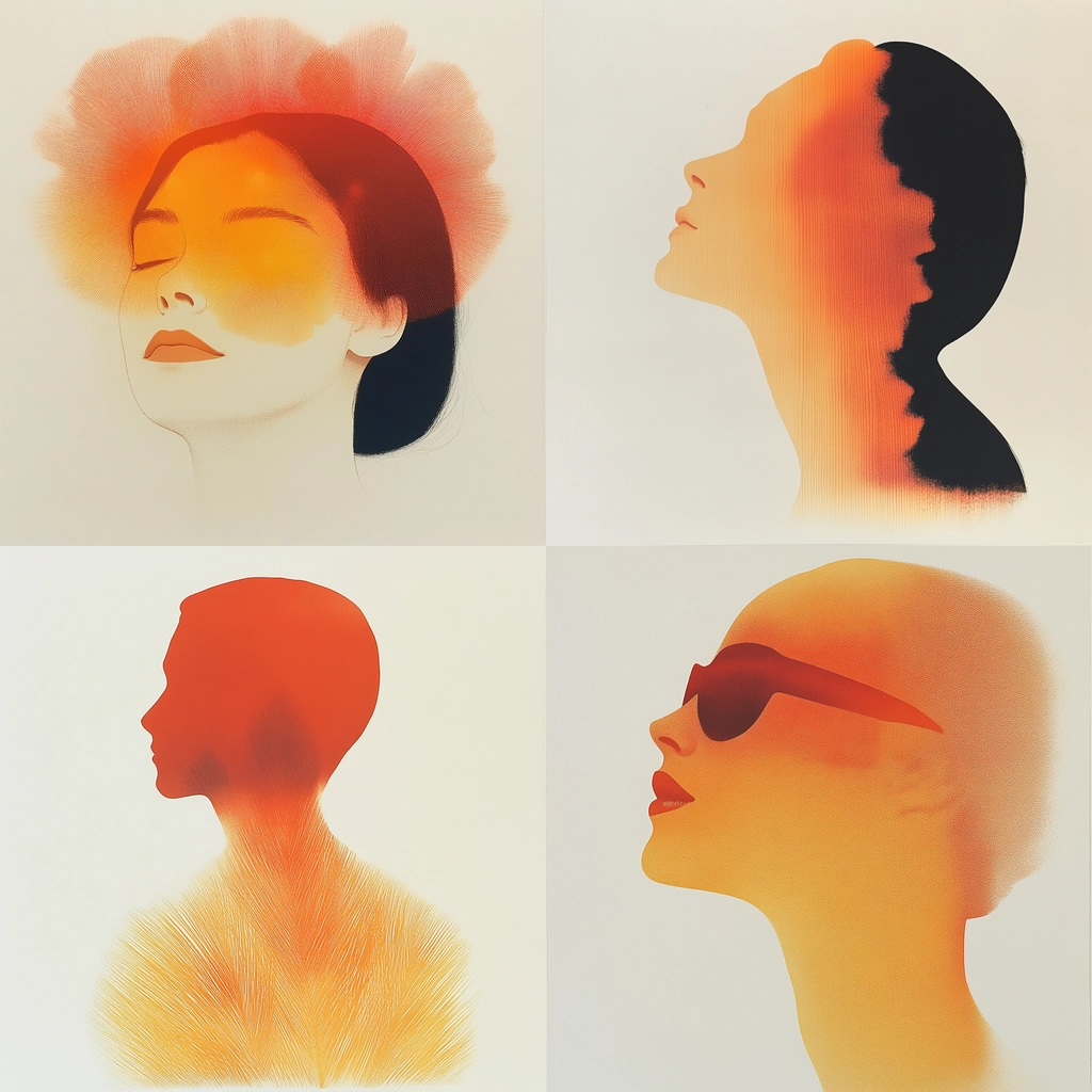 Lighting effects emphasize gradient shifts, creating a halo effect around the silhouettes. The use of orange is dominant and serves as a focal point, while black adds contrast. Texture is smooth with a soft gradient that creates depth and subtle shadow effects, adding a tactile feel to the surface.