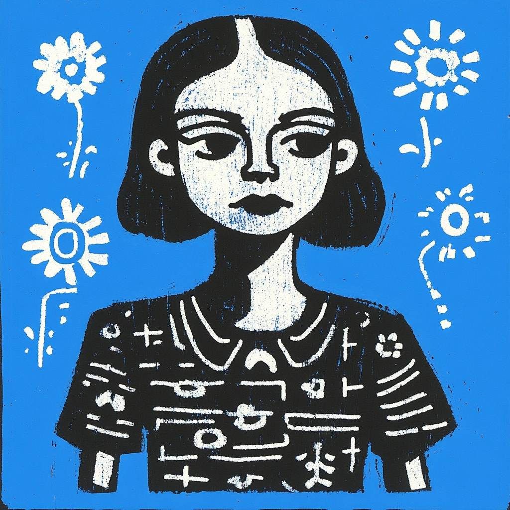 Flat lighting emphasizes the sharp contrast between black and white, creating a graphic clarity; blue adds a vivid counterpoint contributing to spatial separation; textures are minimal, focusing on crisp, uniform fills and bold outlines that define the spatial boundaries with flat, matte surfaces.