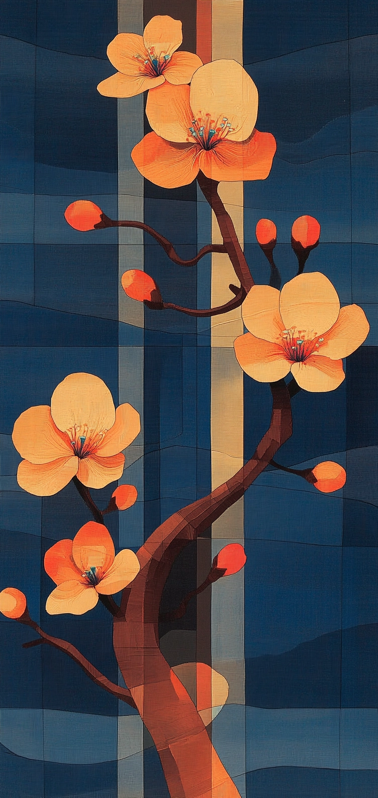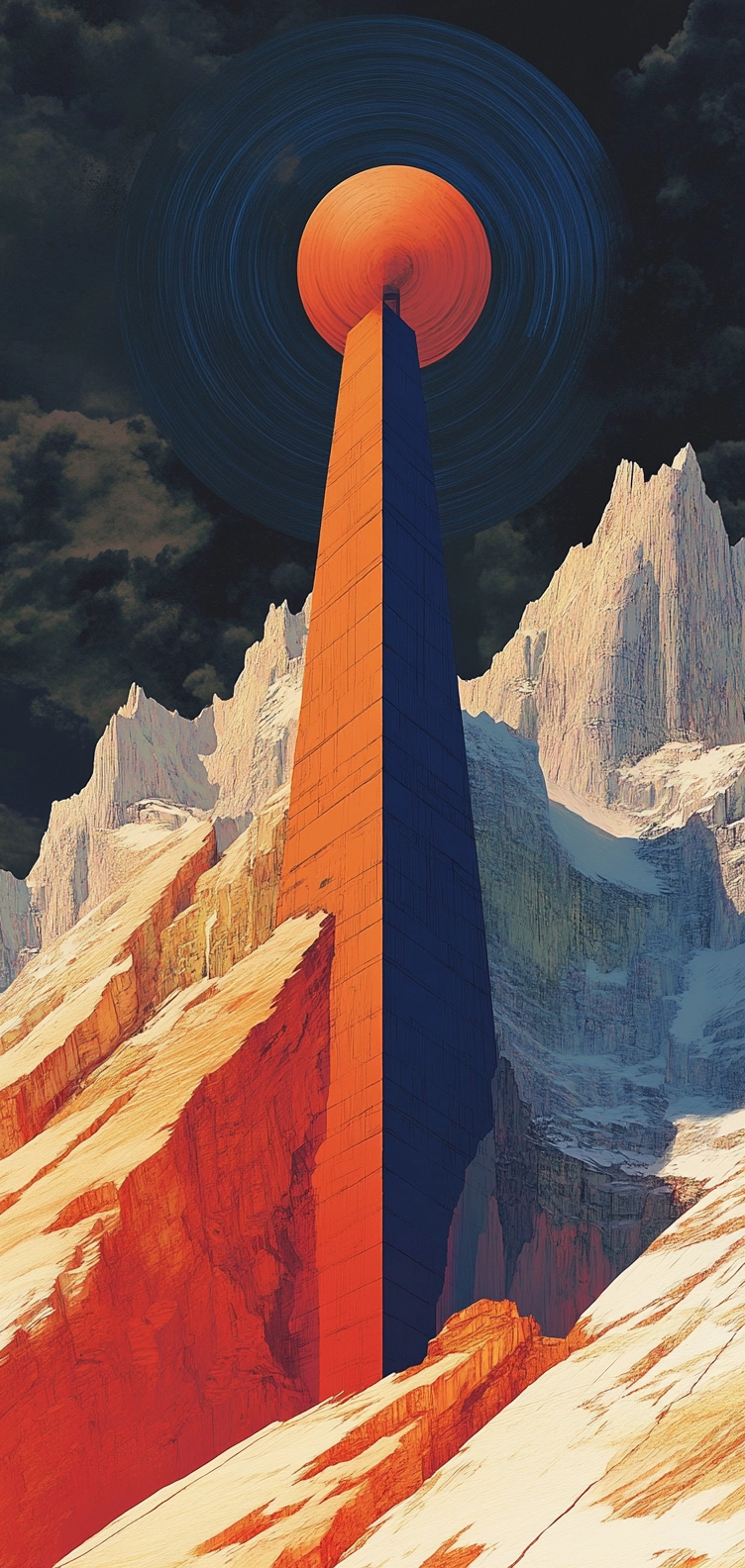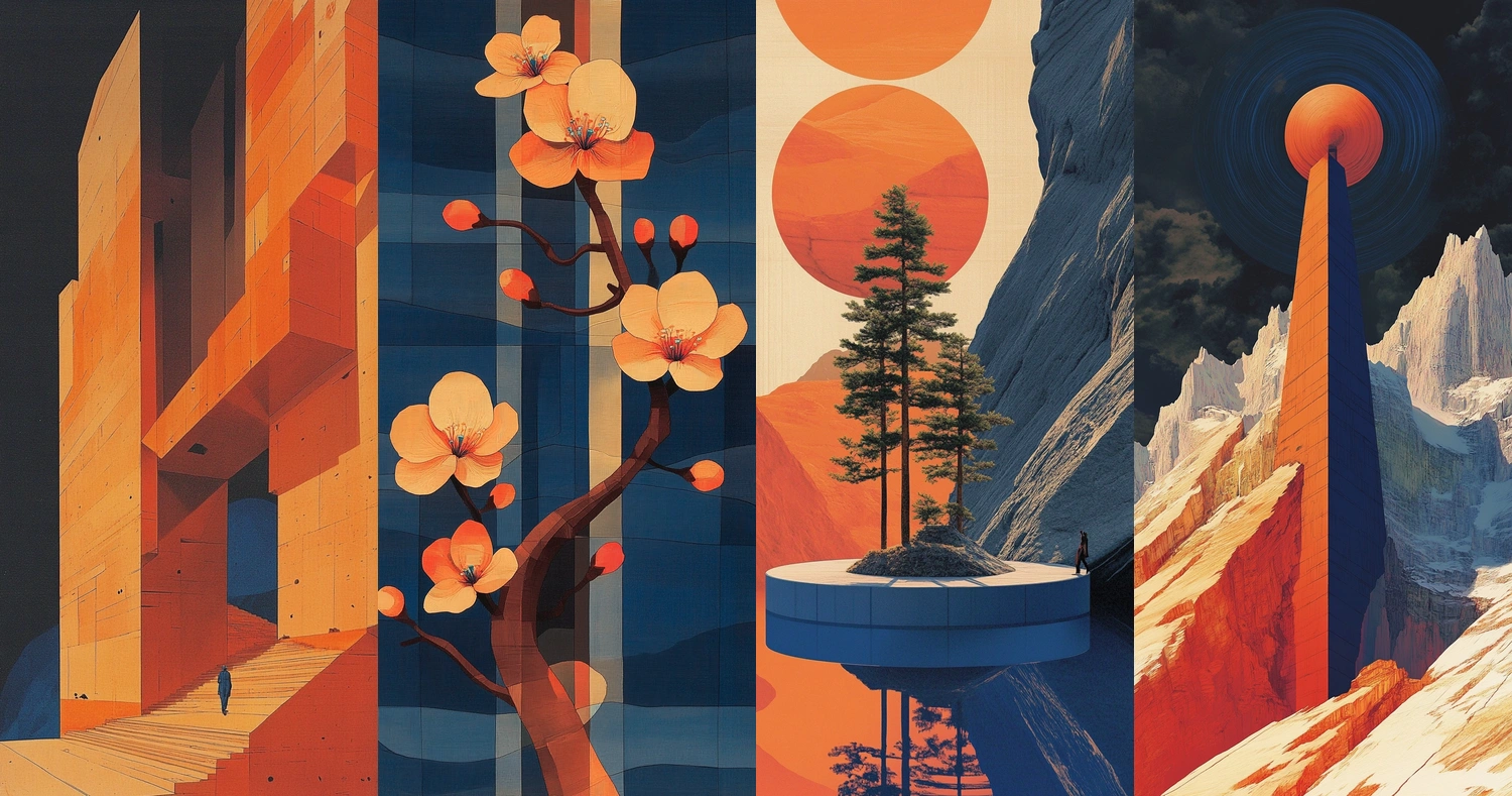 Bold use of contrasting colors and shapes creates a striking composition.