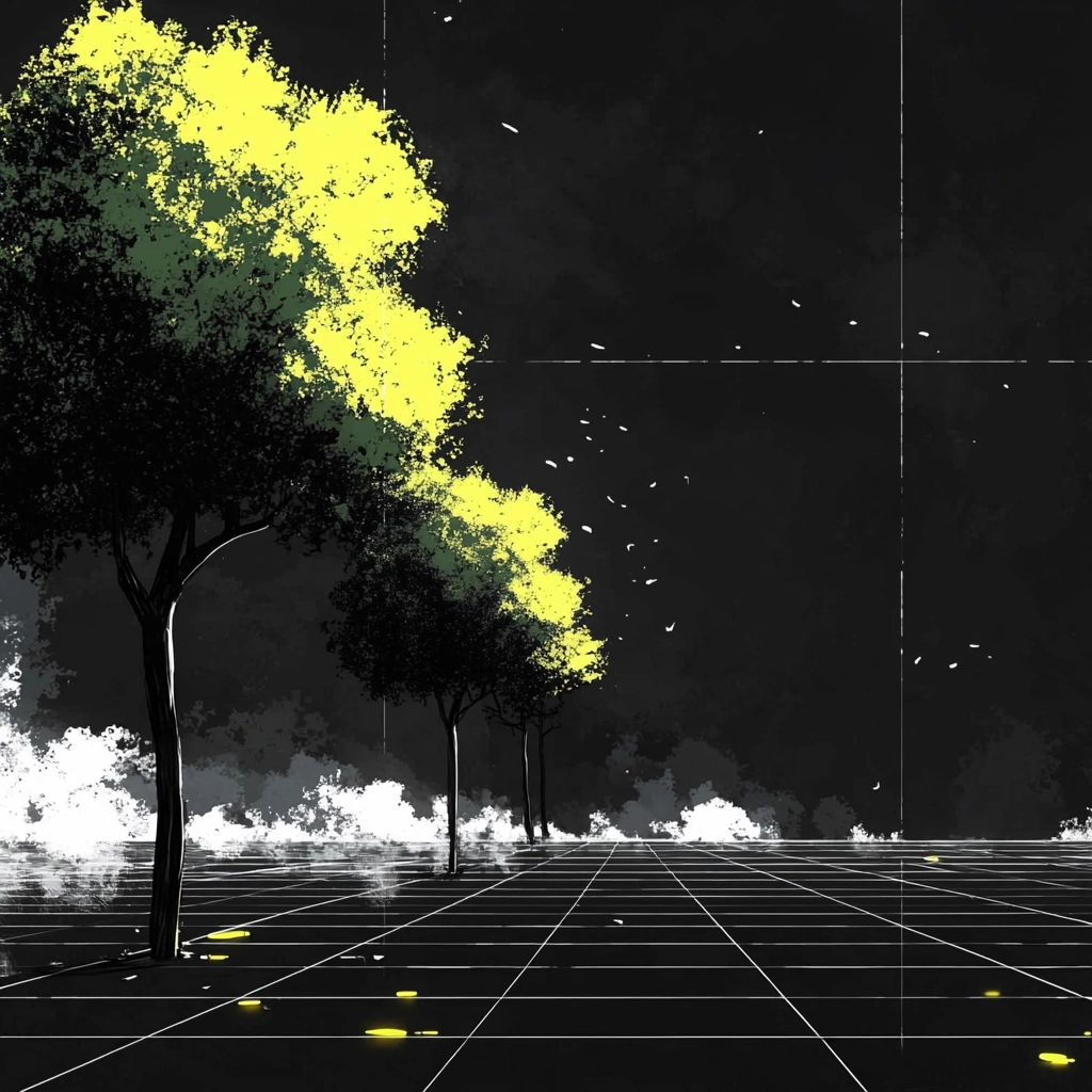 Bold contrasts between dark backgrounds and vivid highlights create a striking visual impact.