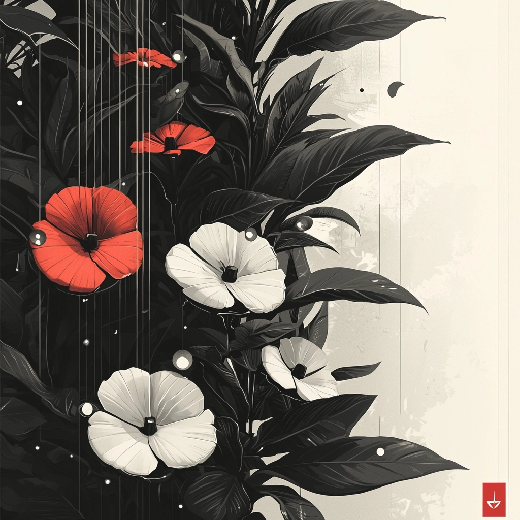 Bold contrasts with striking minimal use of red in monochrome settings.