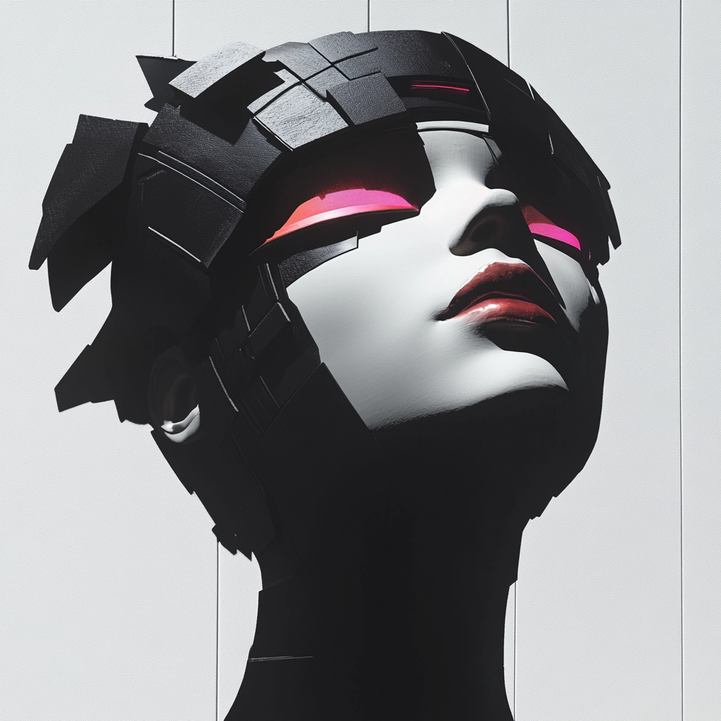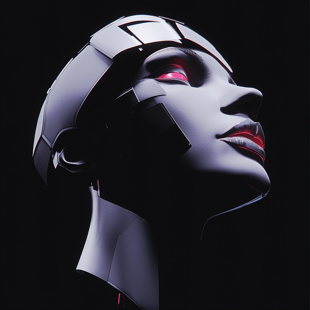 Sharp, dynamic lighting accentuates the sleek textures of the forms, creating a sense of depth with strong contrasts between light and shadow. The smooth surface reflections highlight the detailed, futuristic design, emphasizing a sense of mechanical precision and sophistication.