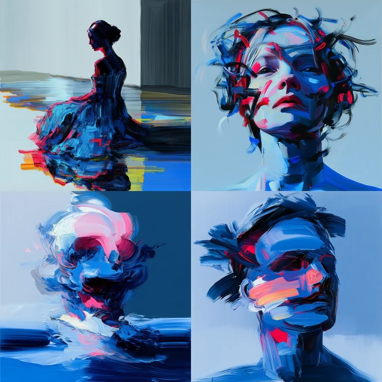 Rich in contrast between natural shades enhanced by shimmering light.