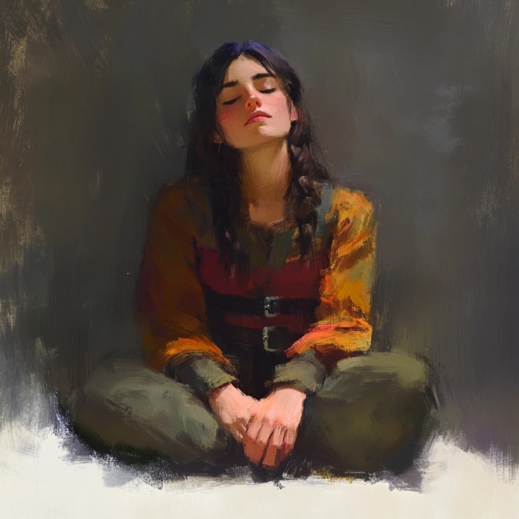 Rich, textured brushstrokes define the surfaces with depth, employing warm earthy colors. Dynamic lighting enhances texture, providing a palpable sense of space within the painted forms.