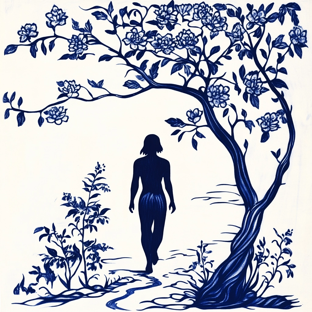 Balanced use of indigo and white creates intricate linework and detailed compositions.
