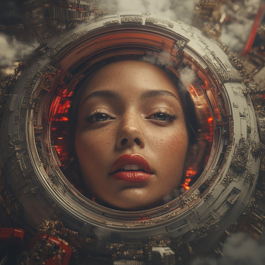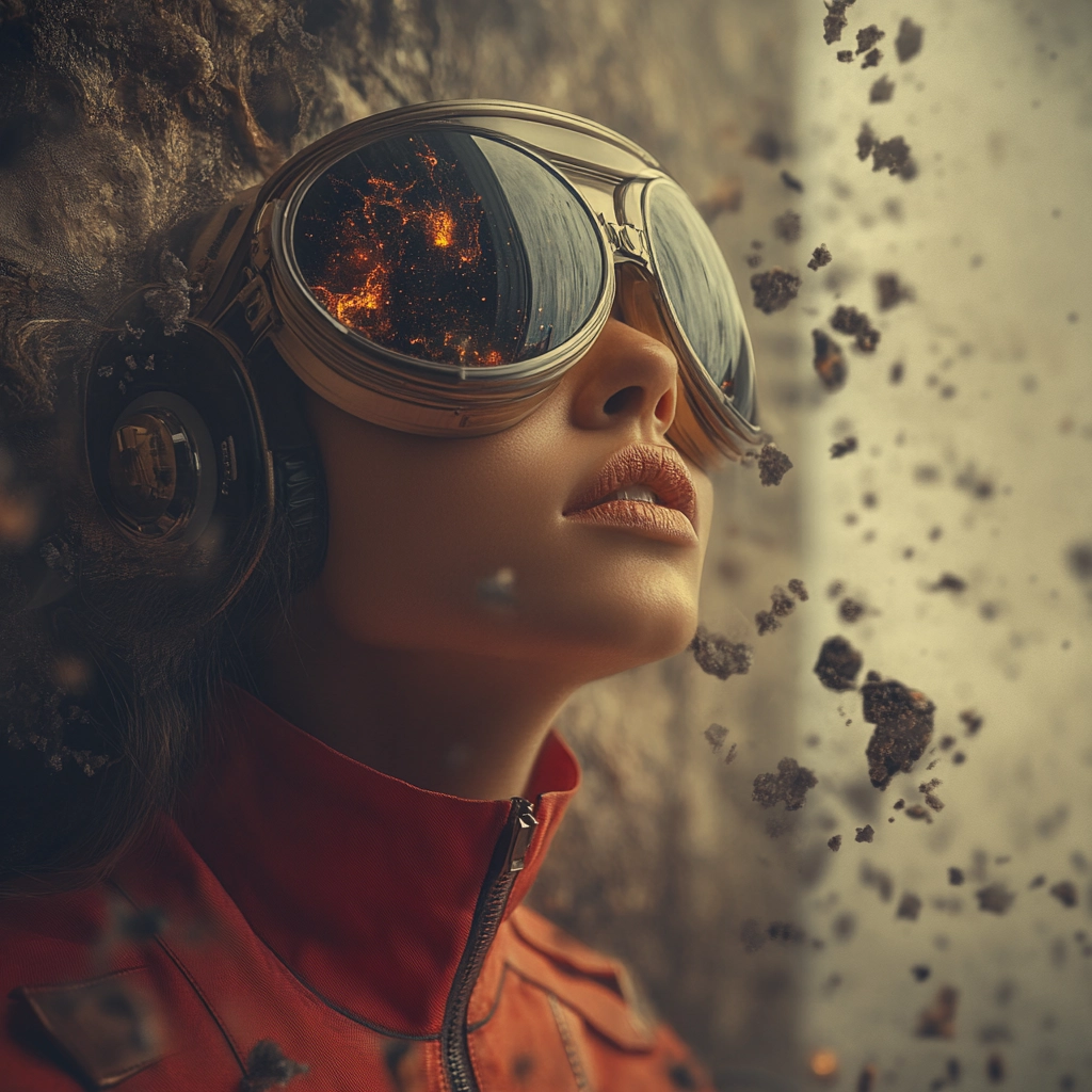 Bold hues juxtaposed with intricate metallic textures create a sense of otherworldly realism.