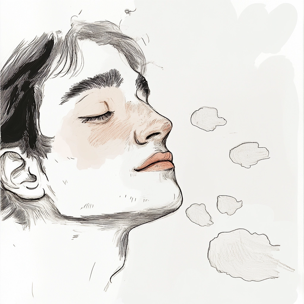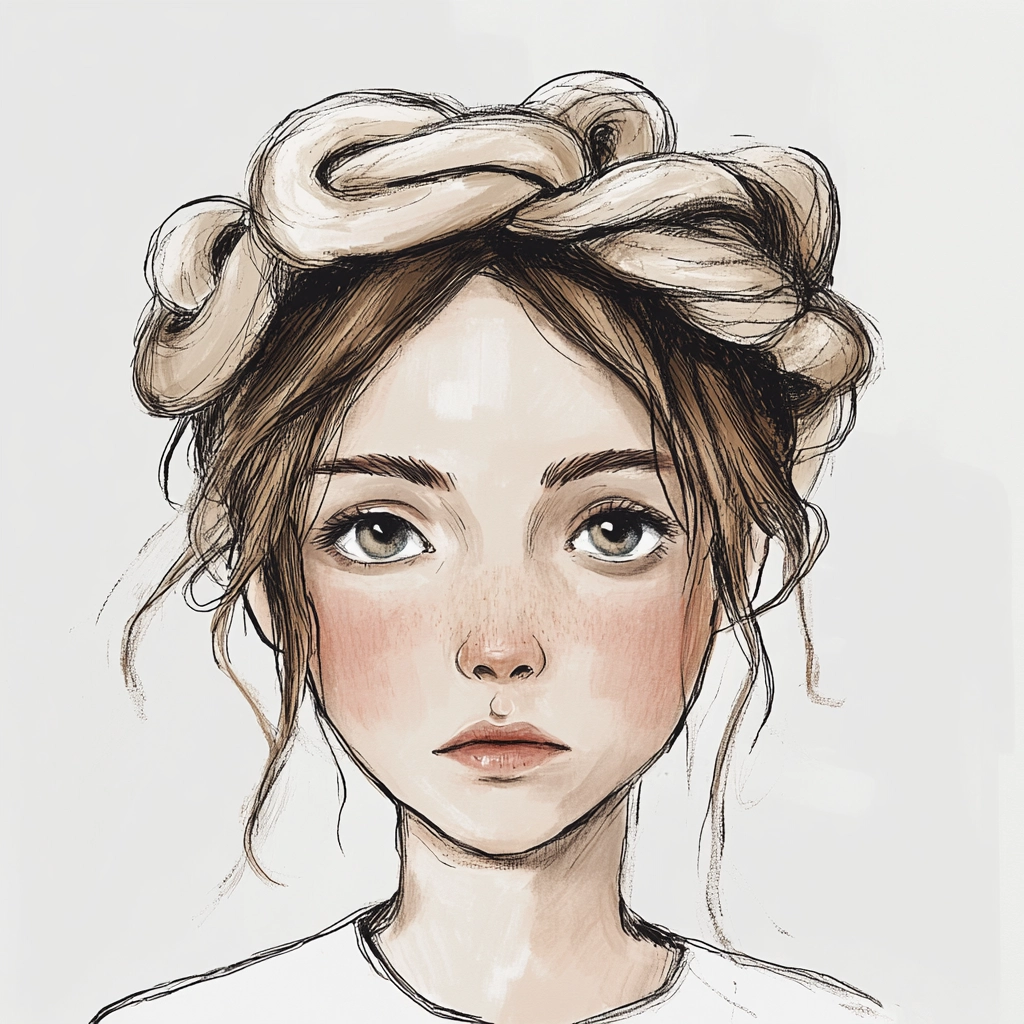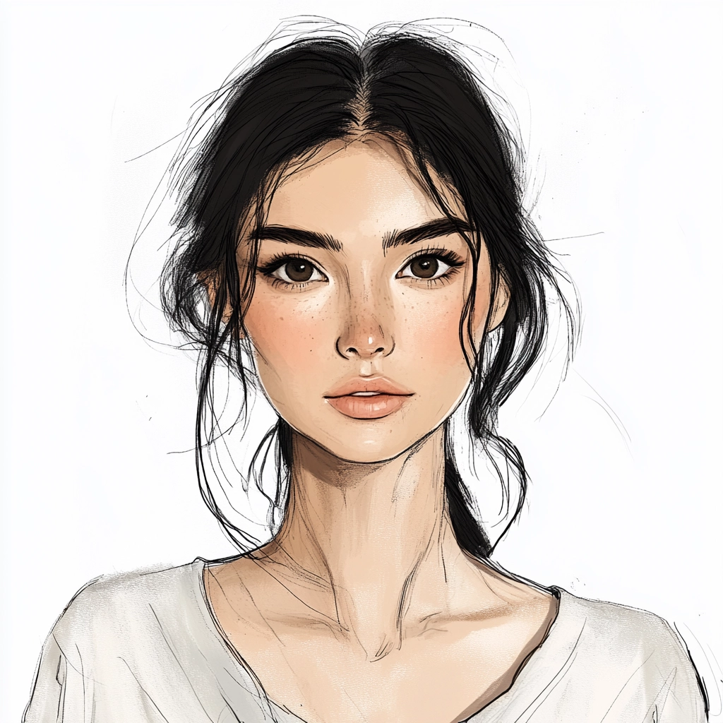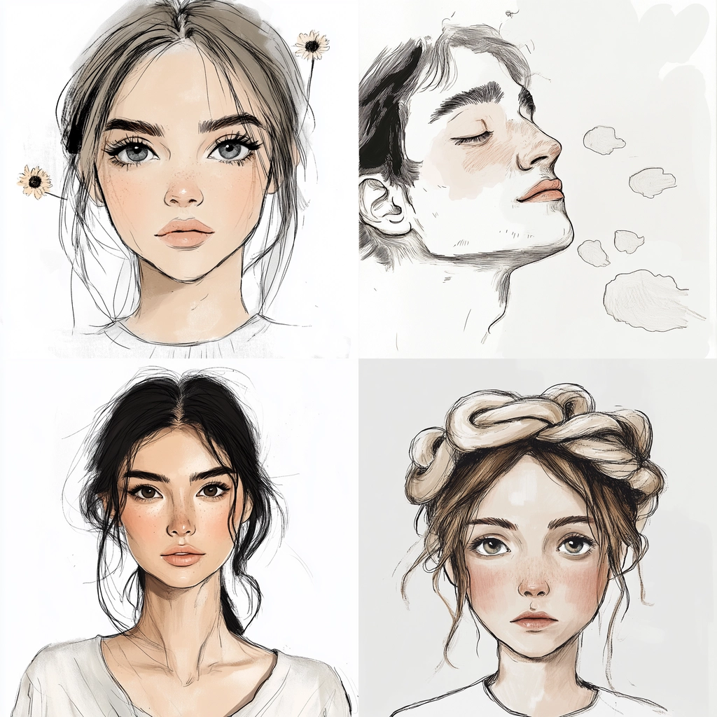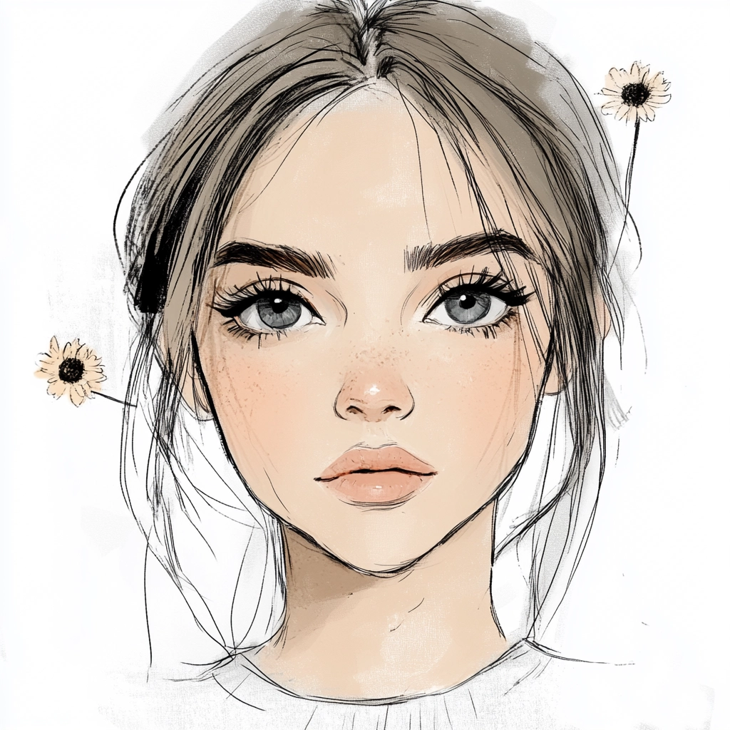 Ink outlines with gentle shading deliver a minimalist, elegant composition.