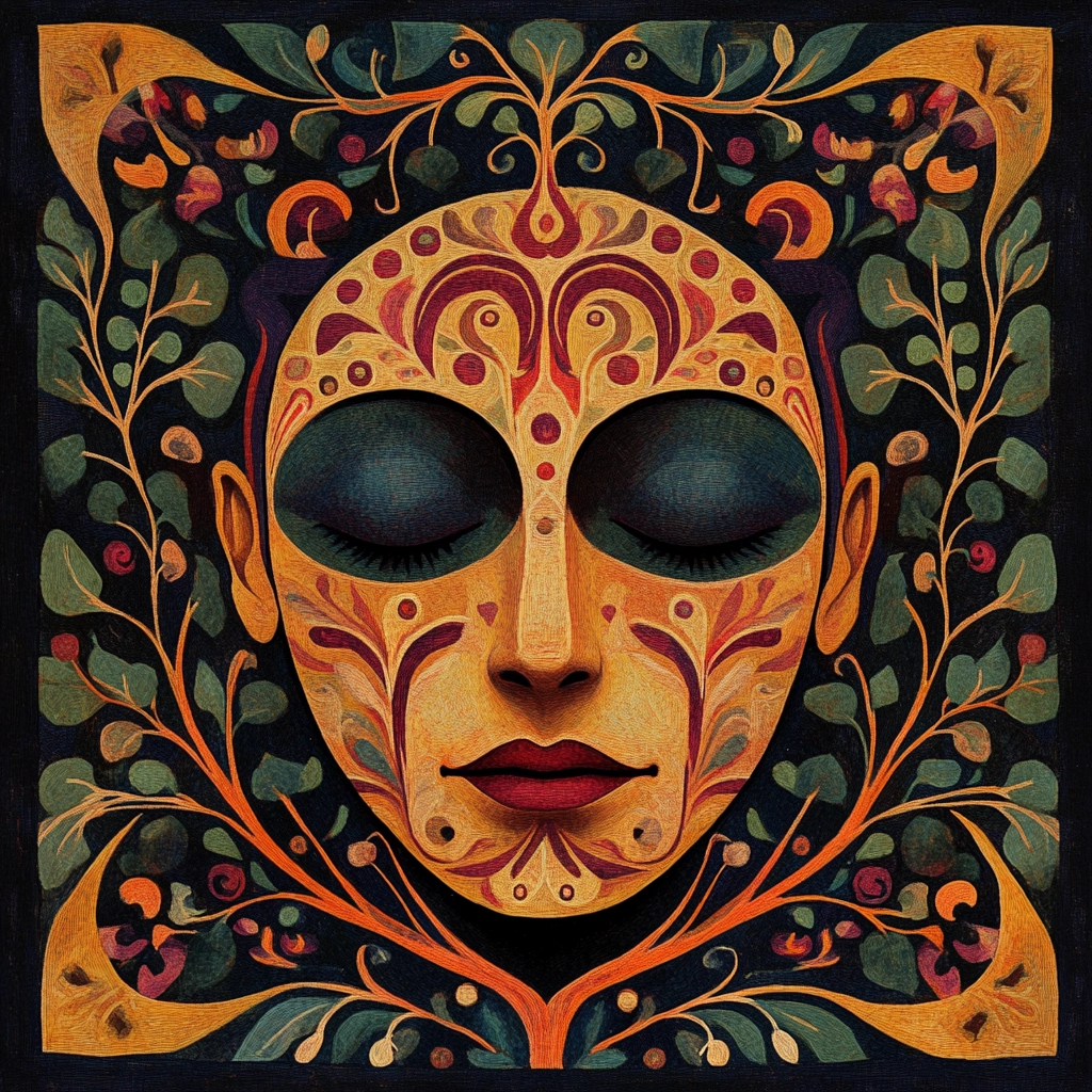 Lighting effects emphasize the contrast between bright and dark areas, enhancing the detailed pattern work. The colors are rich and saturated, contributing to the vivid and ornate presentation. The textures are smooth yet intricately rendered, creating a dynamic sense of depth.