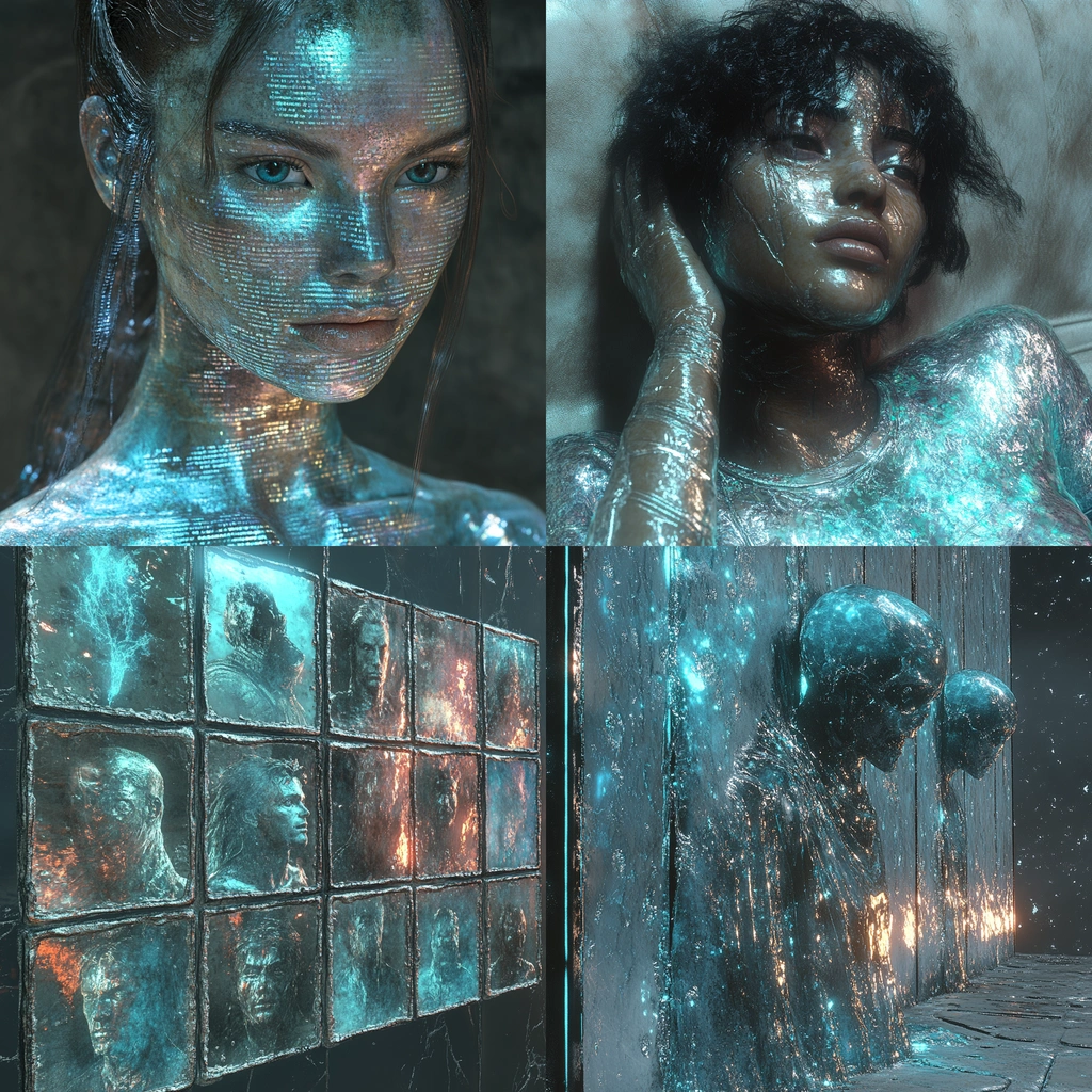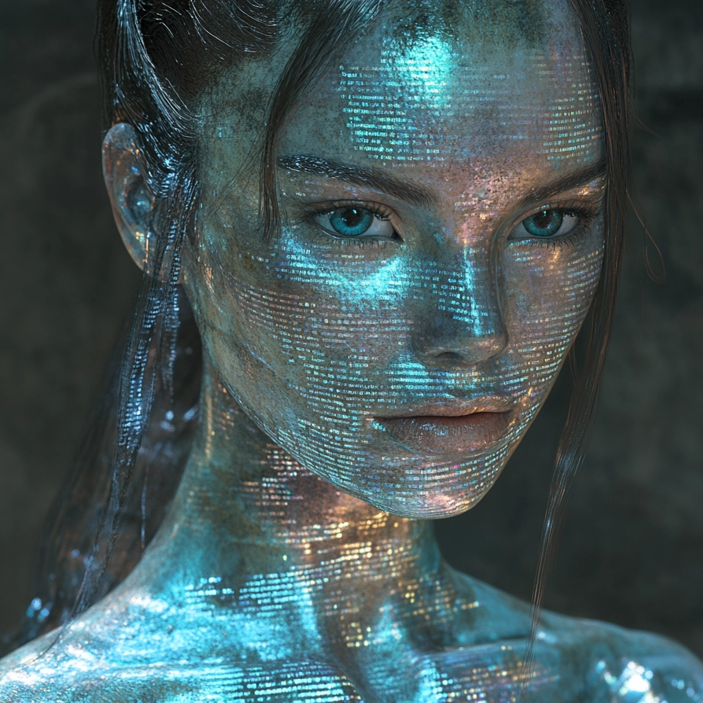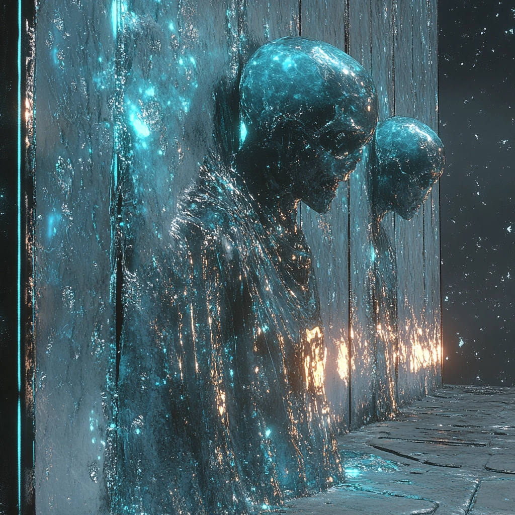 Vivid cyan highlights create a luminescent contrast on textured surfaces.