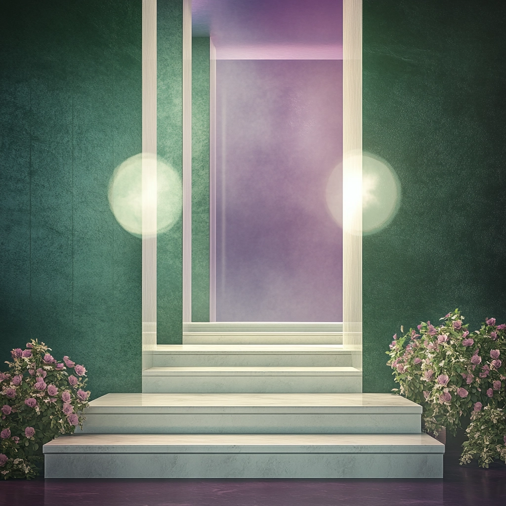 The use of indirect light sources plays with shadows, creating depth and highlighting vertical elements. The interplay of deep colors with soft, radiating light enhances the spatial layers, creating a textured environment that is visually rich and detailed.