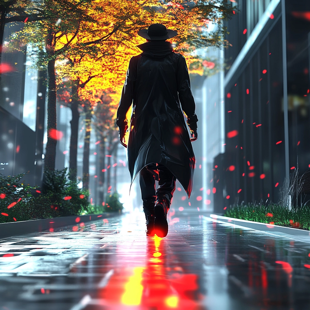 Intense lighting contrasts amplify intricate urban textures and neon hues.