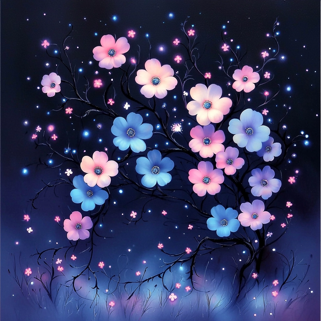 The lighting creates a glowing effect, enhancing the contrast between bright and dark areas. Colors are rich and saturated, with a smooth gradient from foreground to background, providing depth.