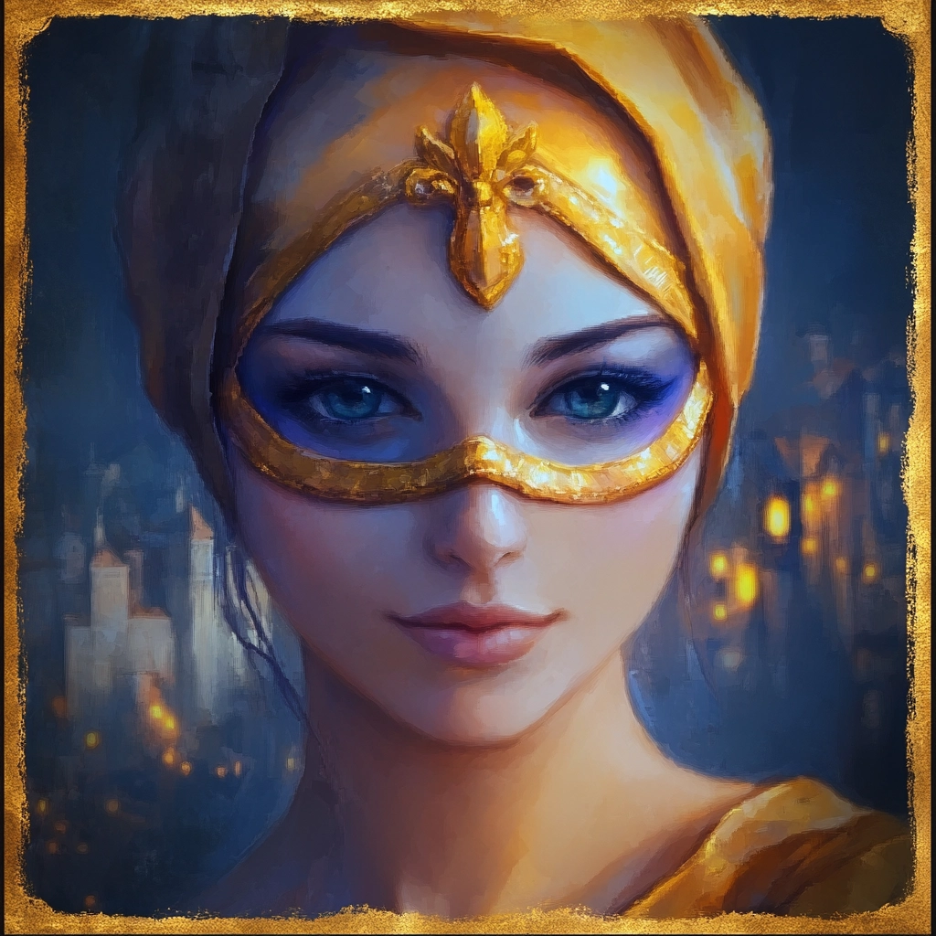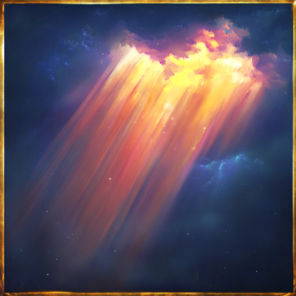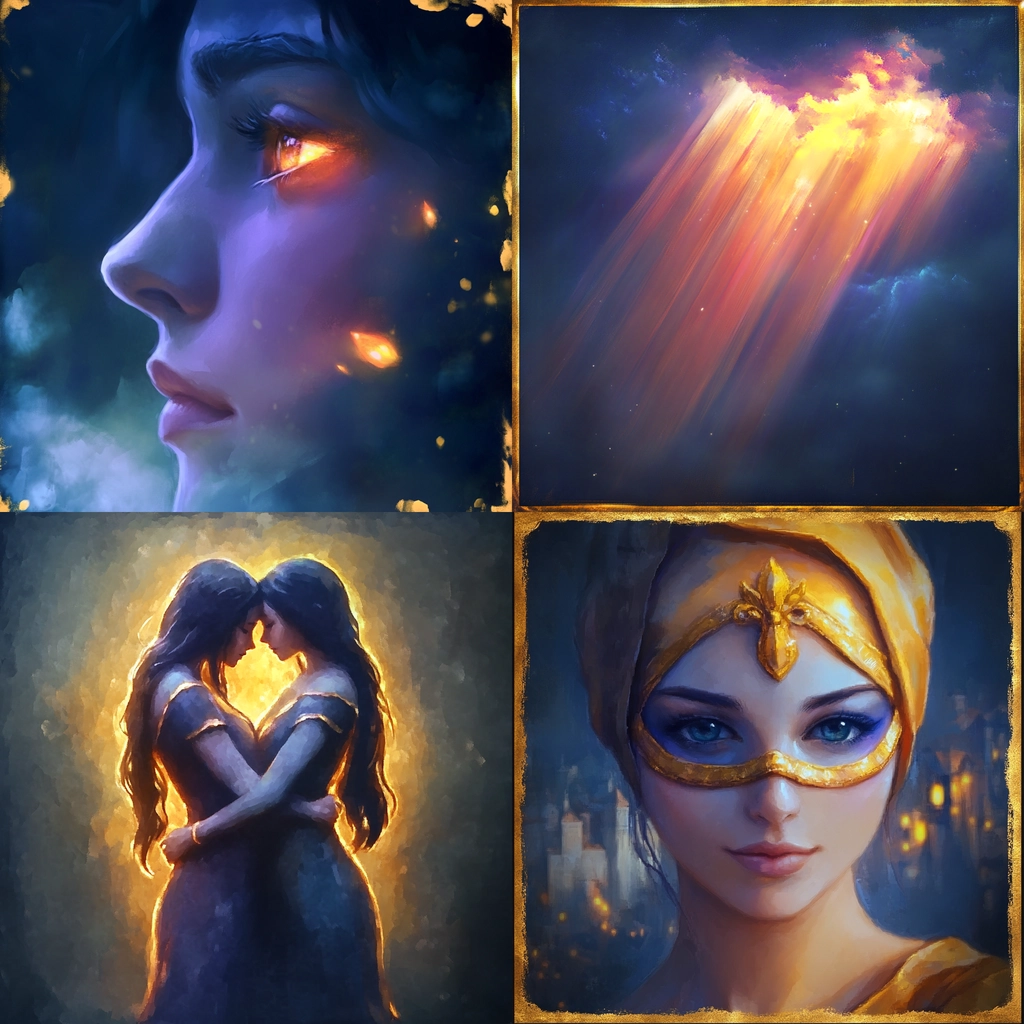 The vivid lighting effects create strong focal points, with gold hues contributing to a luminous atmosphere. Dark blues provide depth, while wine red accents add subtle warmth. Textures offer a dynamic visual experience with intricate spatial contrasts.