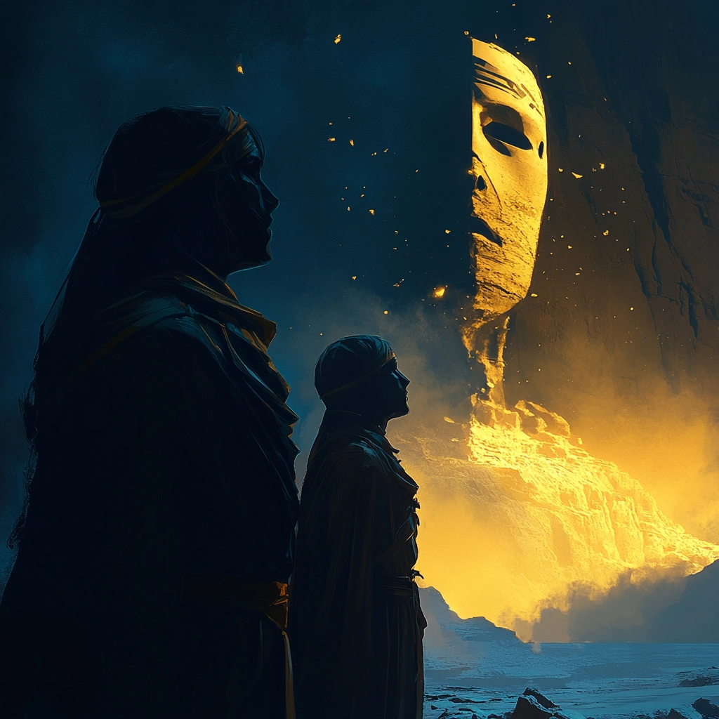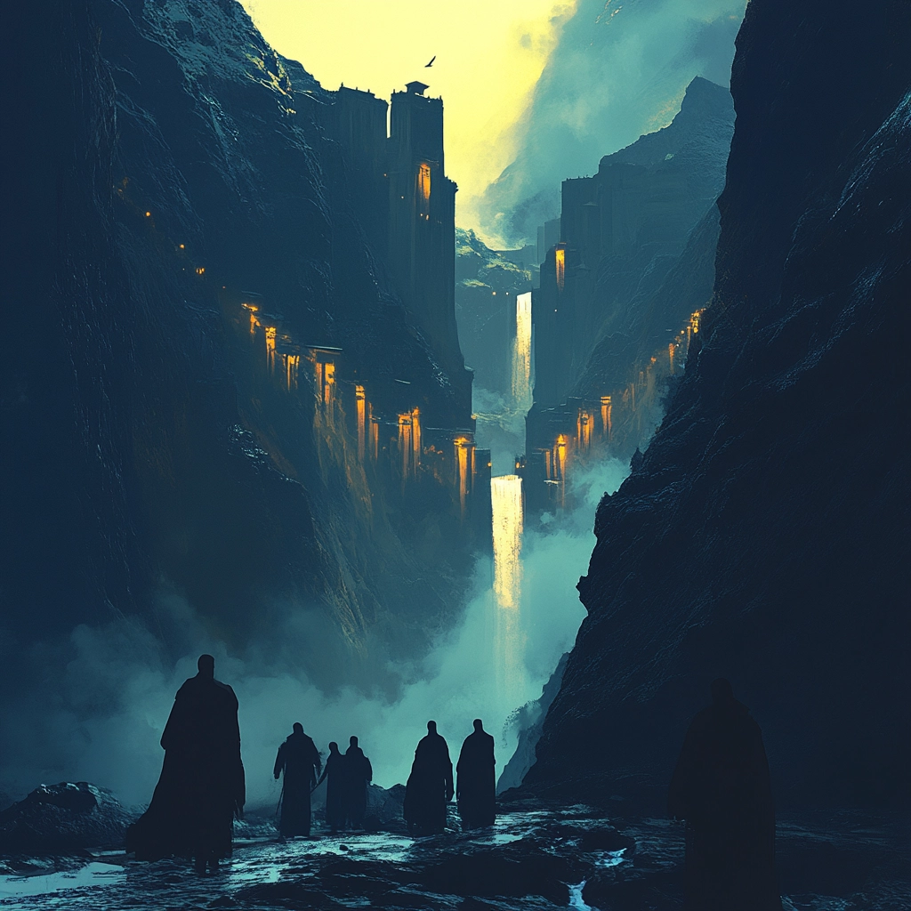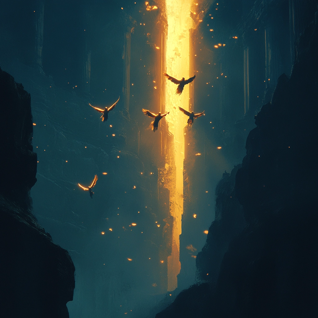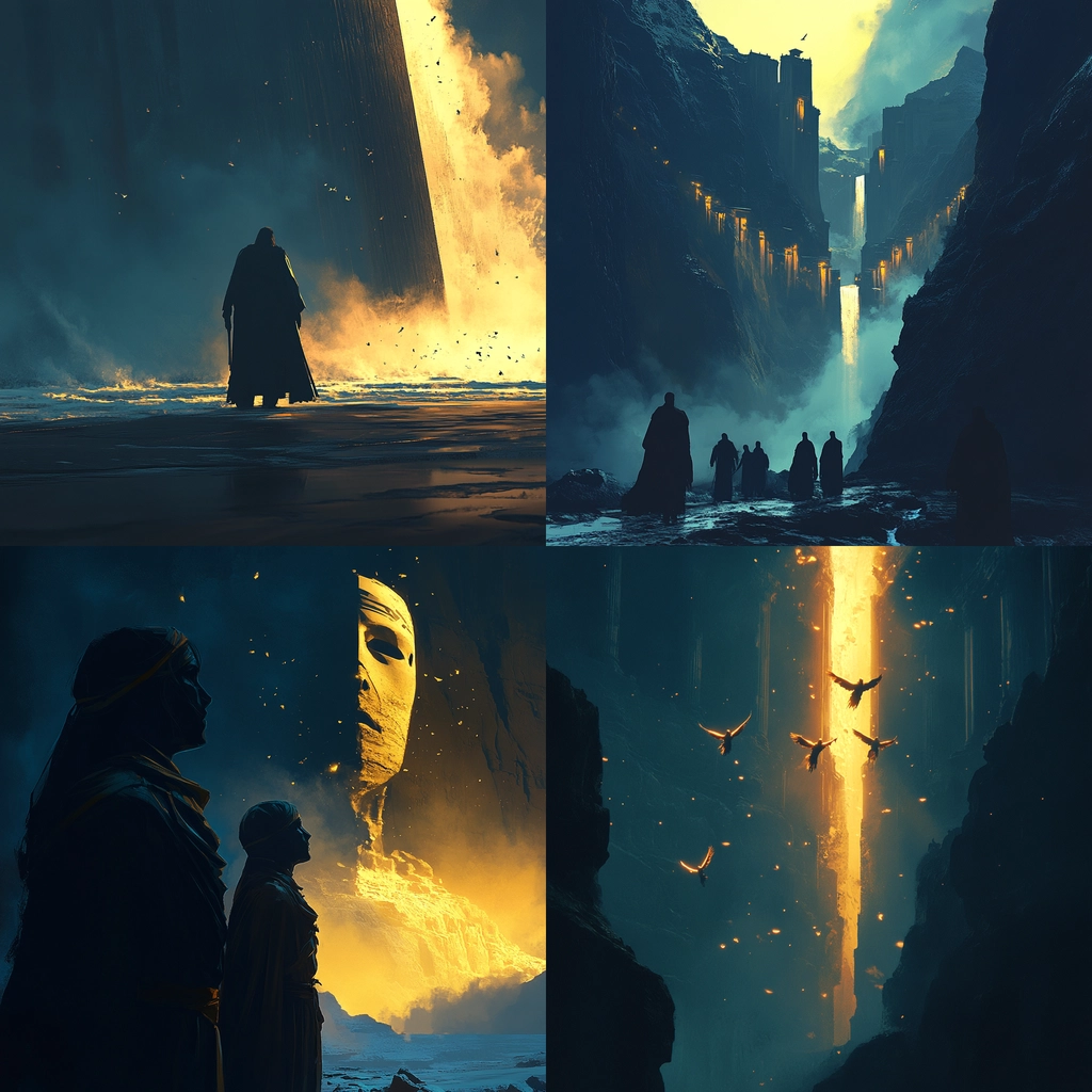 Bold contrasts and intense lighting highlight the deep color saturation and dramatic composition.
