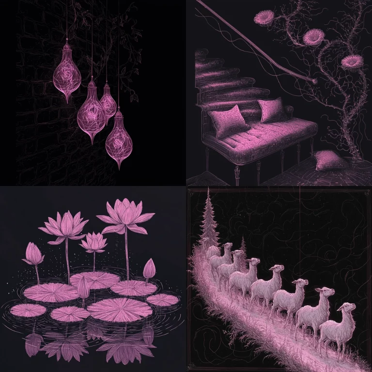 A vivid interplay of light and shadow illuminates water elements against a backdrop of lush greenery.