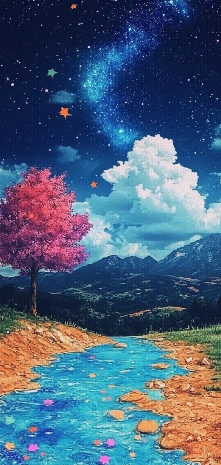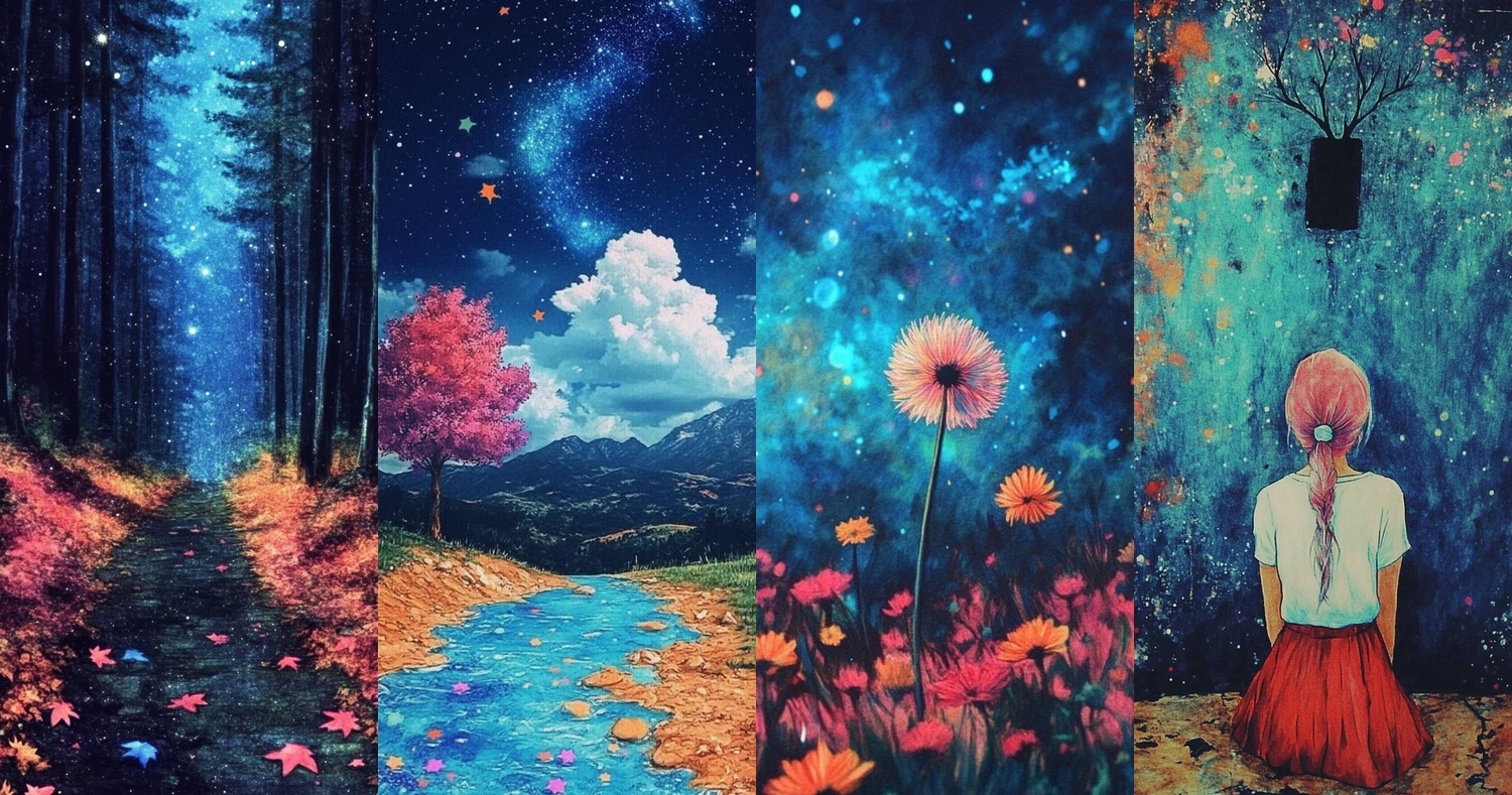 Vivid night-themed compositions featuring vibrant color contrasts.