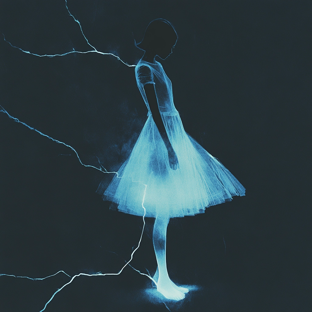 Electric blue silhouettes vividly stand out against deep black backgrounds.