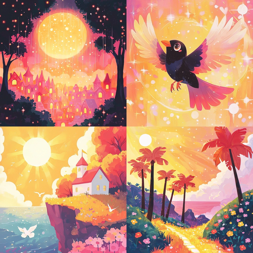 Radiant tones with a whimsical composition.