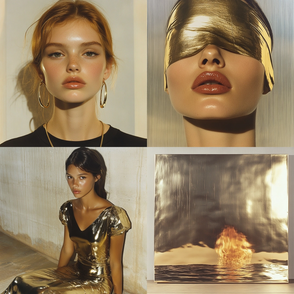 Prominent use of gold tones creates a striking visual allure with sophisticated depth.