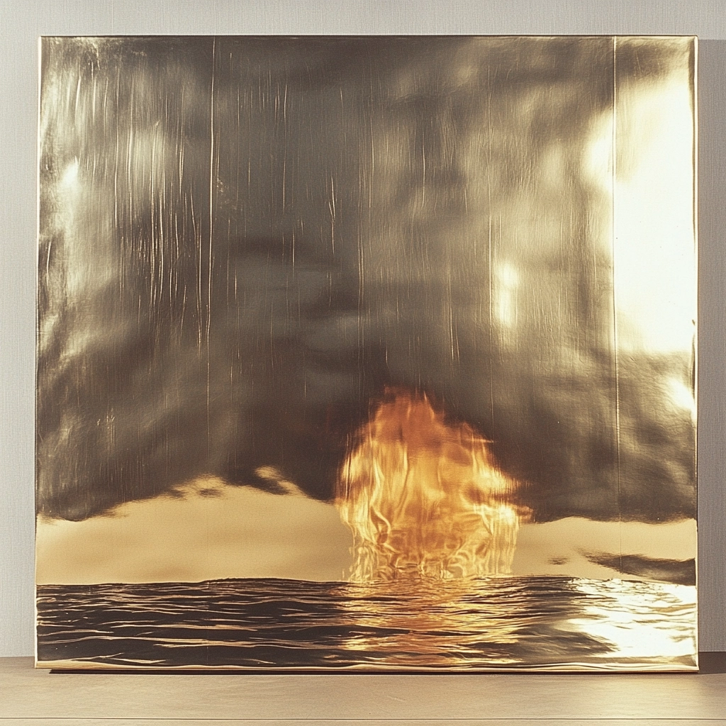 The interplay between light and golden hues emphasizes a reflective surface quality, enhancing visual texture and depth. The spatial arrangement accentuates the luxury and warmth through a meticulous gradient that combines shadows and highlights seamlessly.