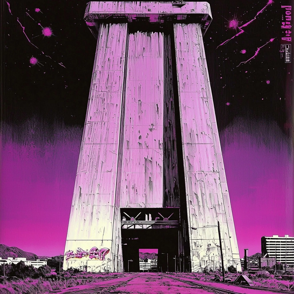 The use of stark lighting amplifies the contrast, emphasizing the depth within the composition. The predominant pink is vibrant, set against the absorbing blacks that form dramatic outlines. The textures convey a gritty, tactile quality with a clean, polished finish.