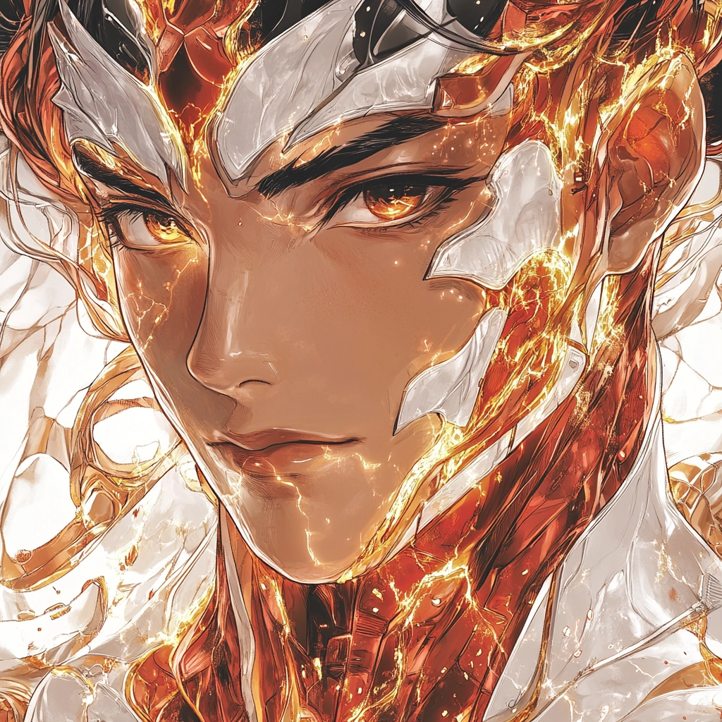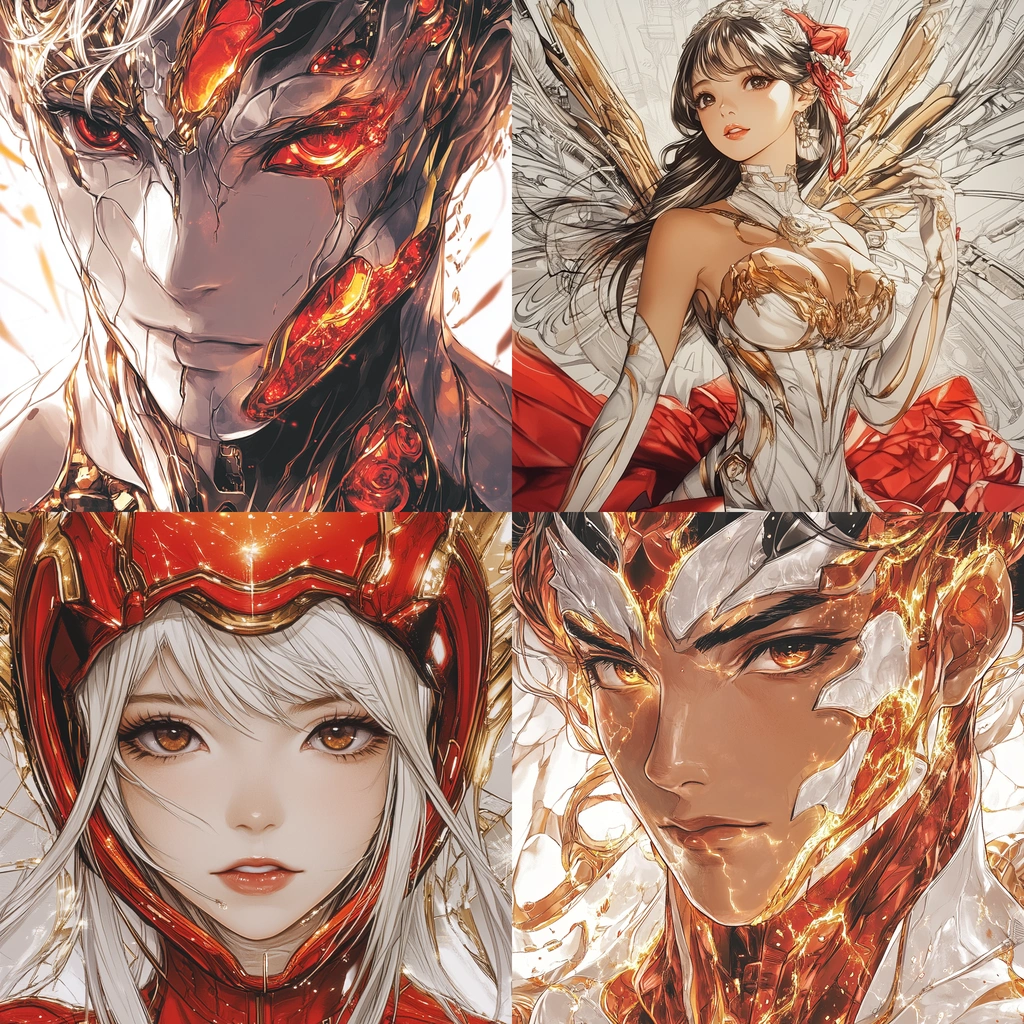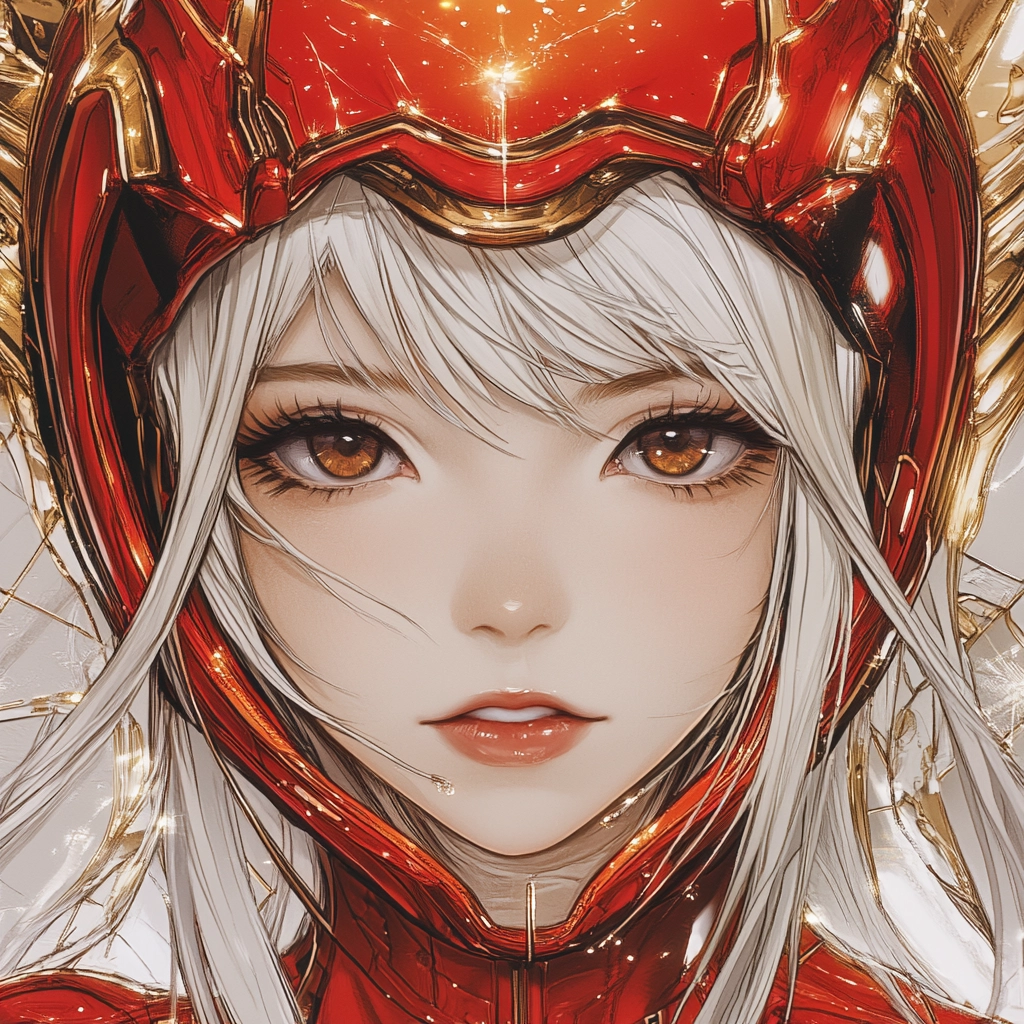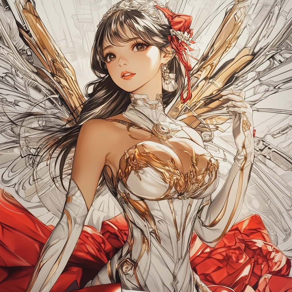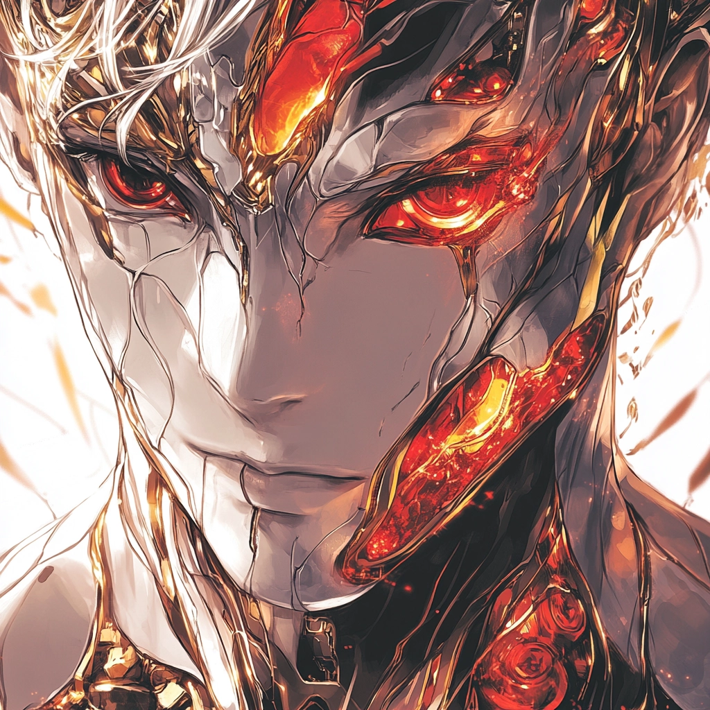 Gold and red metallic hues are prominent, with intricate detailing adding depth. The interplay of light and shadow creates a dynamic spatial dimension, accentuated by the fine, delicate textures.