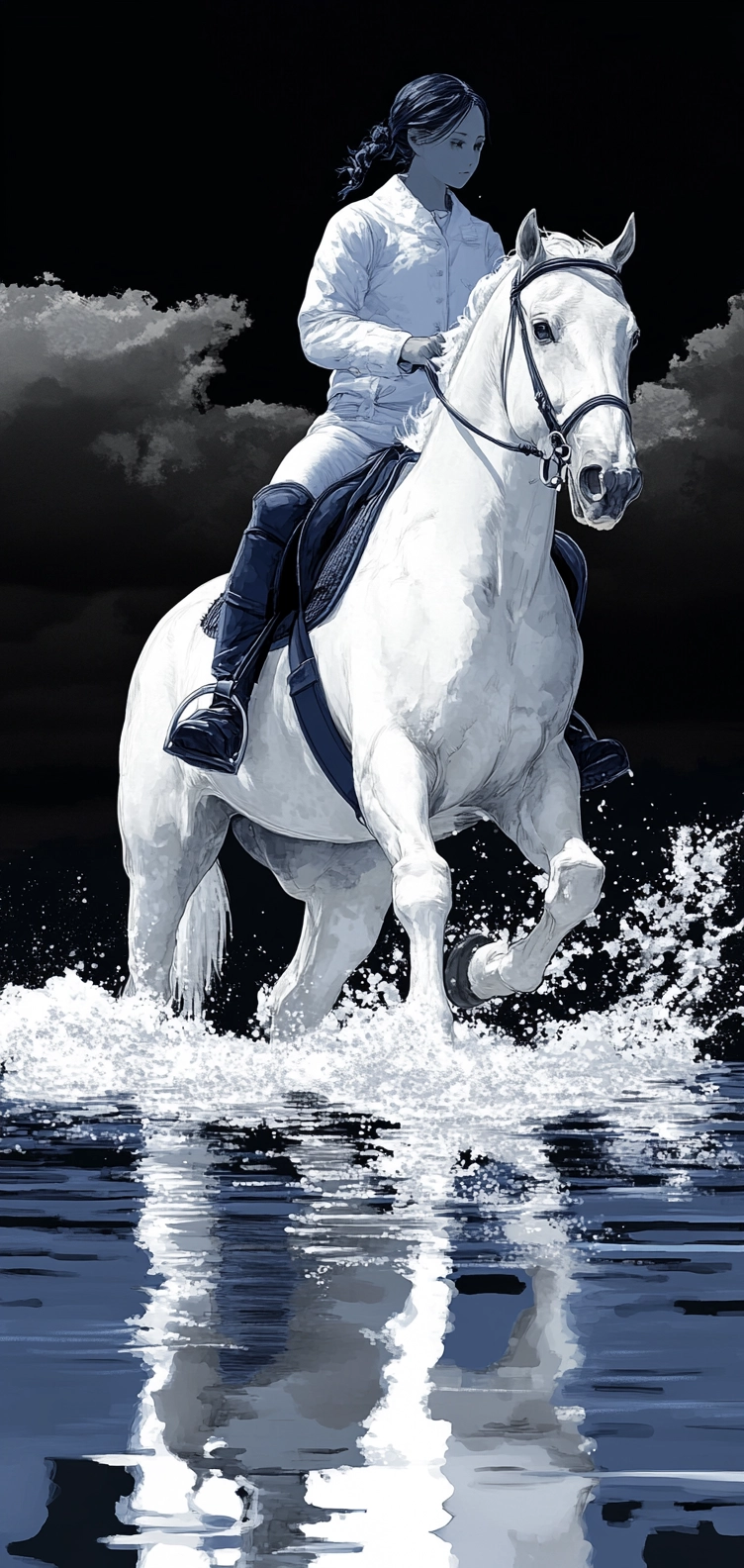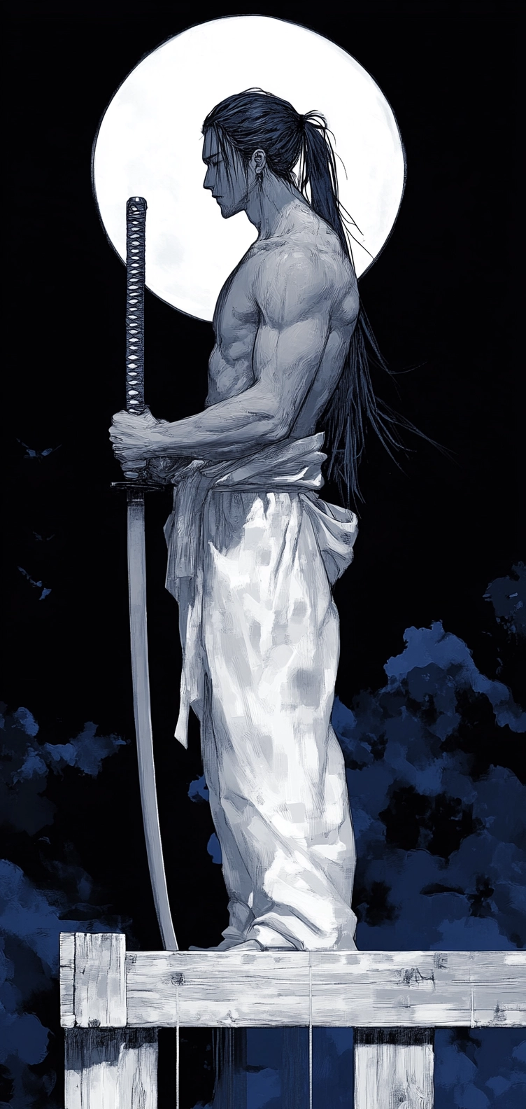 Contrasting light and shadow create a dramatic narrative in a limited color palette.