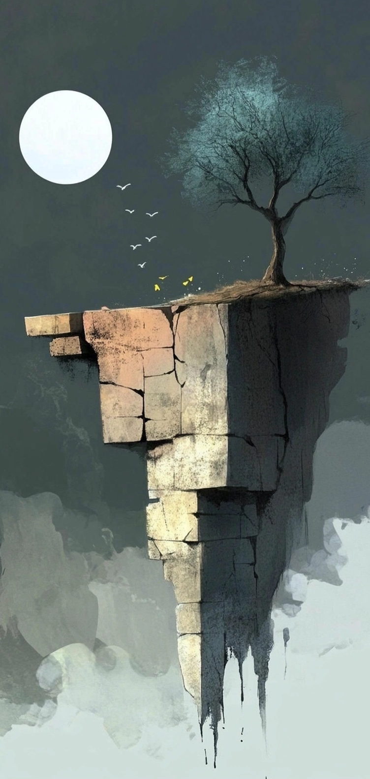 The composition features stark lighting that highlights geometric forms against muted backgrounds, with subtle gradients offering depth. Textures are smooth, enhancing the clarity of shapes.