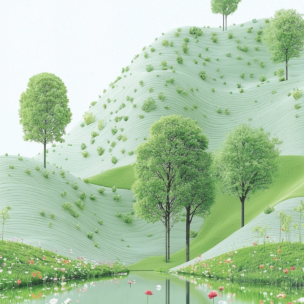 Predominantly green and white, offering a clean, orderly composition.