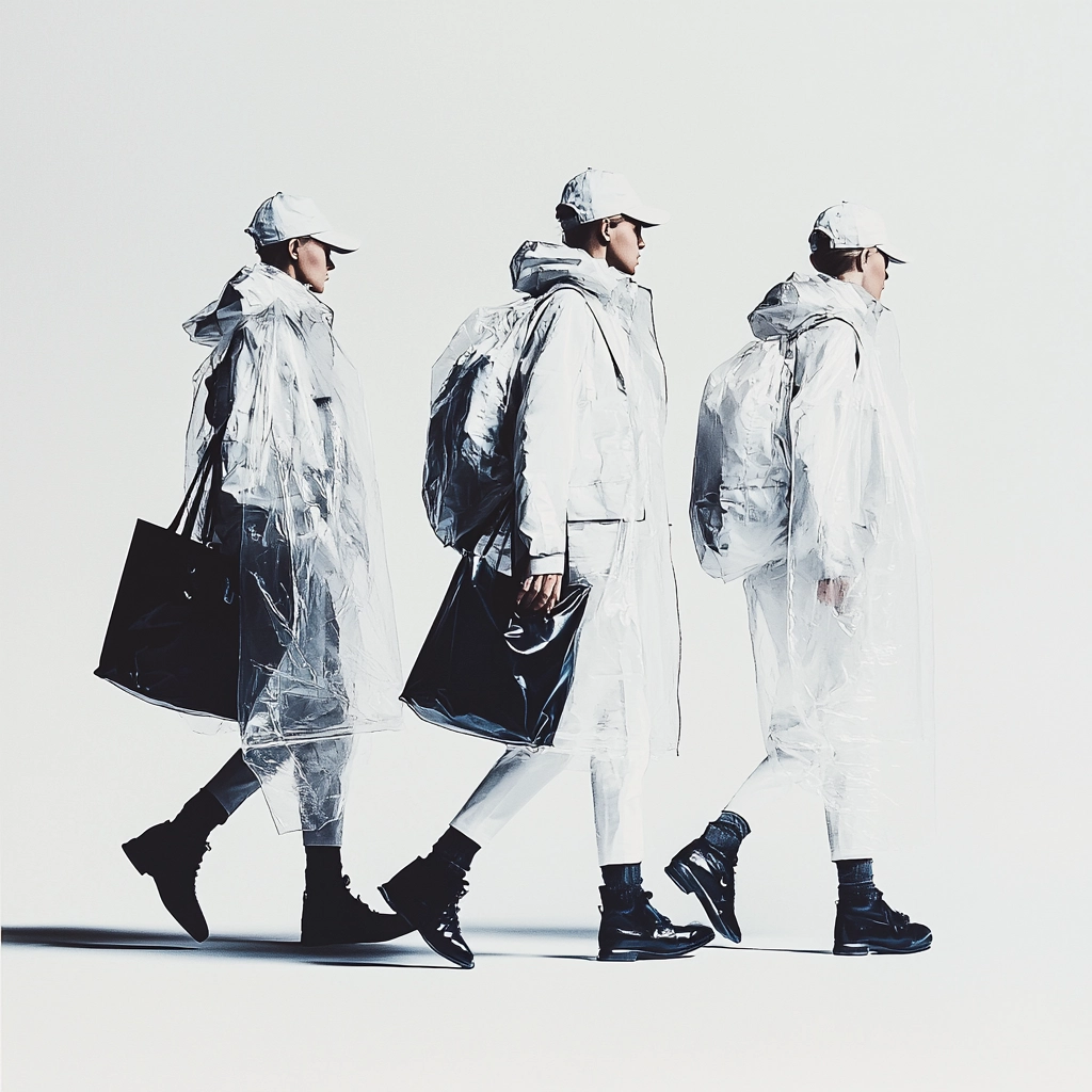 The composition contrasts stark white and deep black with subtle gray tones.