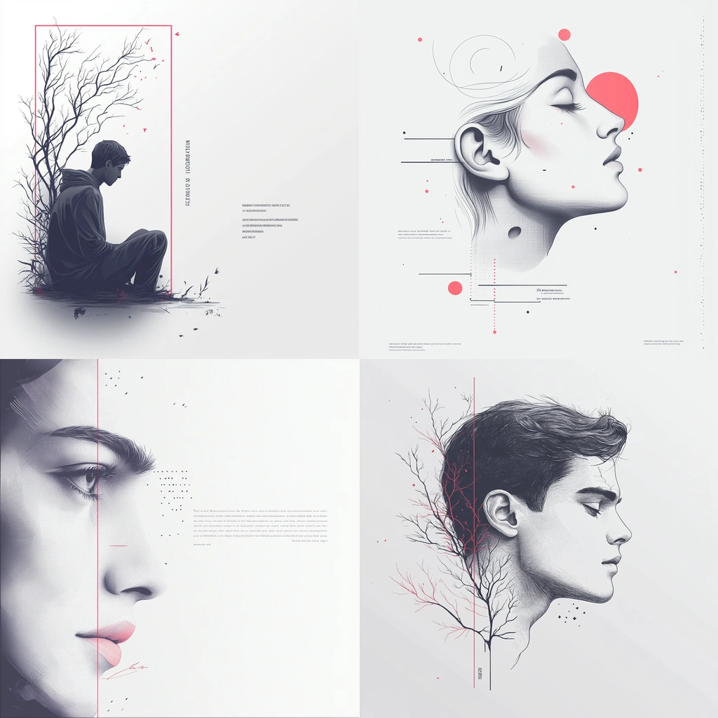 This style features a combination of delicate line art and minimalistic design with a focus on monochrome palette.