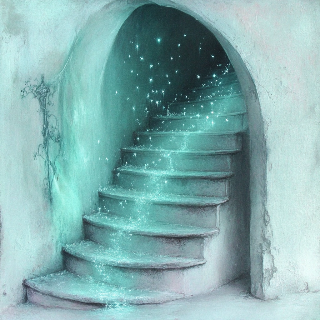 Soft gradient coloring creates a mystical atmosphere with luminous accents highlighting key elements.
