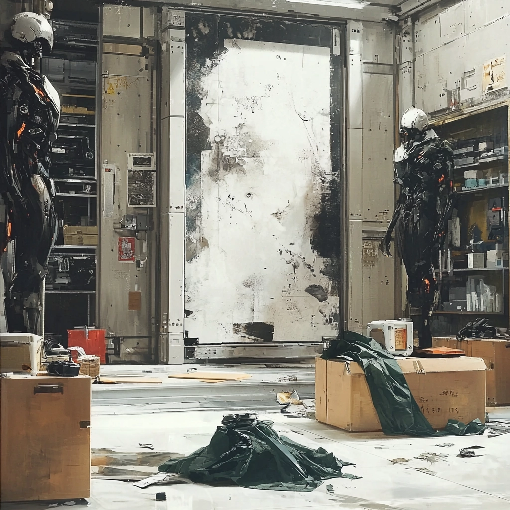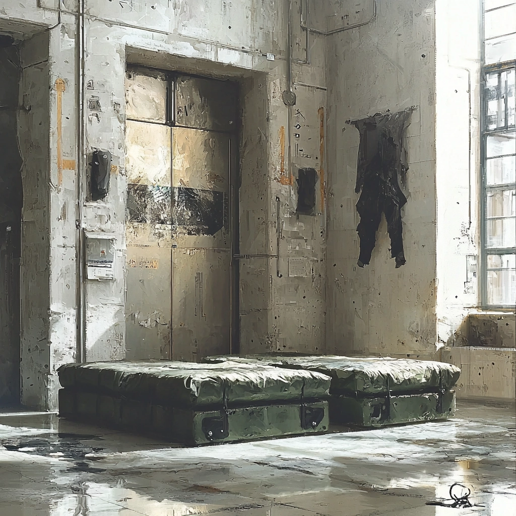 A composition blending muted colors with a gritty, realistic depiction of modern environments.