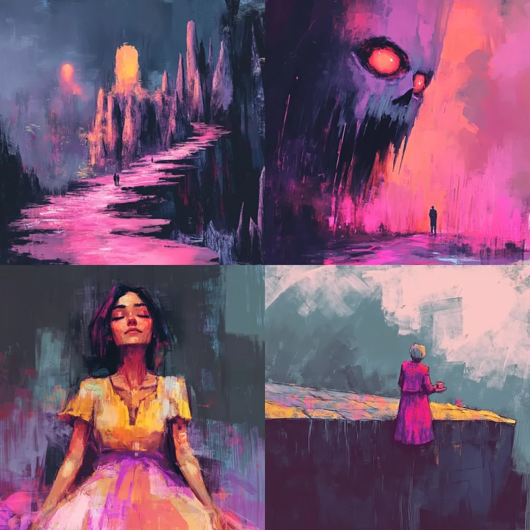 The lighting creates sharp contrasts, highlighting the interplay between shadows and stark illumination. Gray and white tones dominate, outlining a structured yet fluid spatial composition. Textural details are meticulously rendered, suggesting both the depth and intricacy of surfaces.