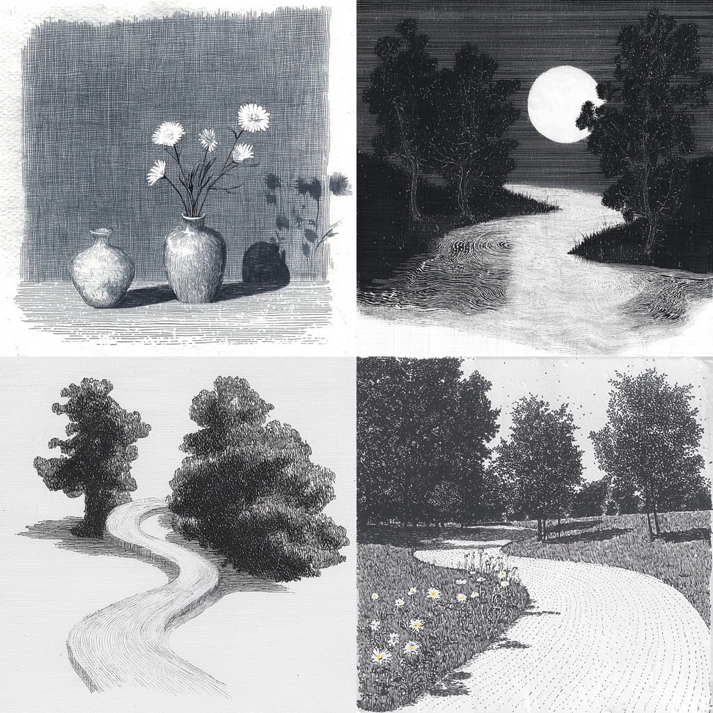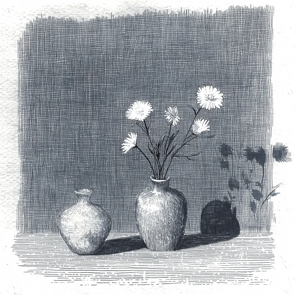 Lighting effects create depth and highlight forms, emphasizing the contrast between light and shadow. The meticulous crosshatching provides a textural sense to surfaces, enhancing the spatial dynamics. Precise line work offers fine details and a coherent structure.
