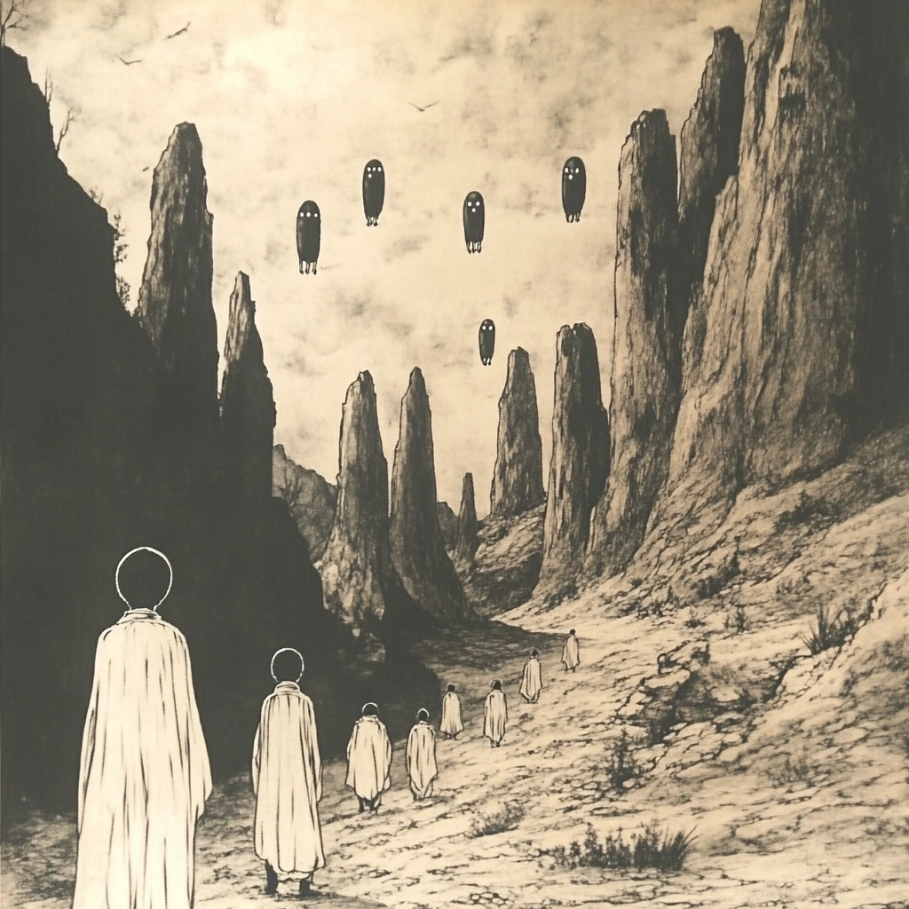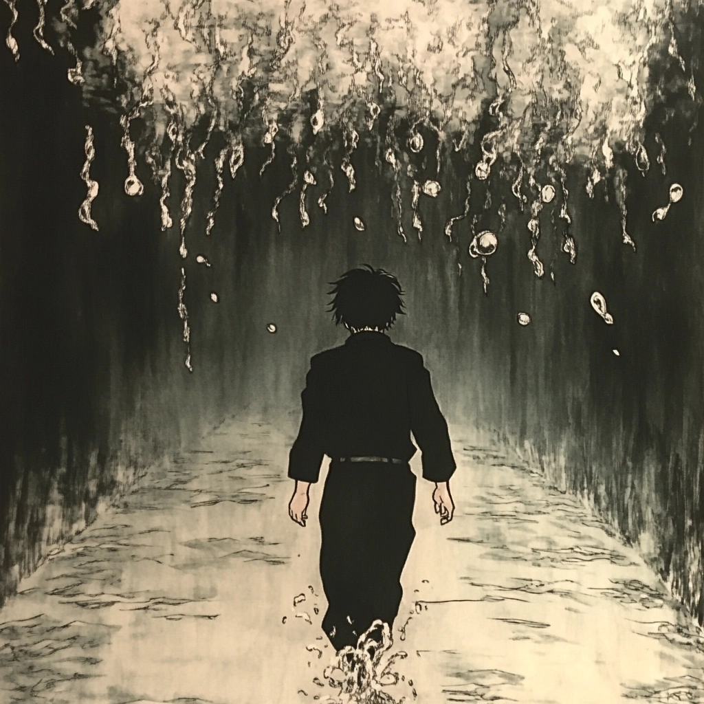Strong contrast between light and dark areas sets a stark, intense mood. The detailed textures contribute to a sense of depth and space, while directional lighting highlights key focal points.