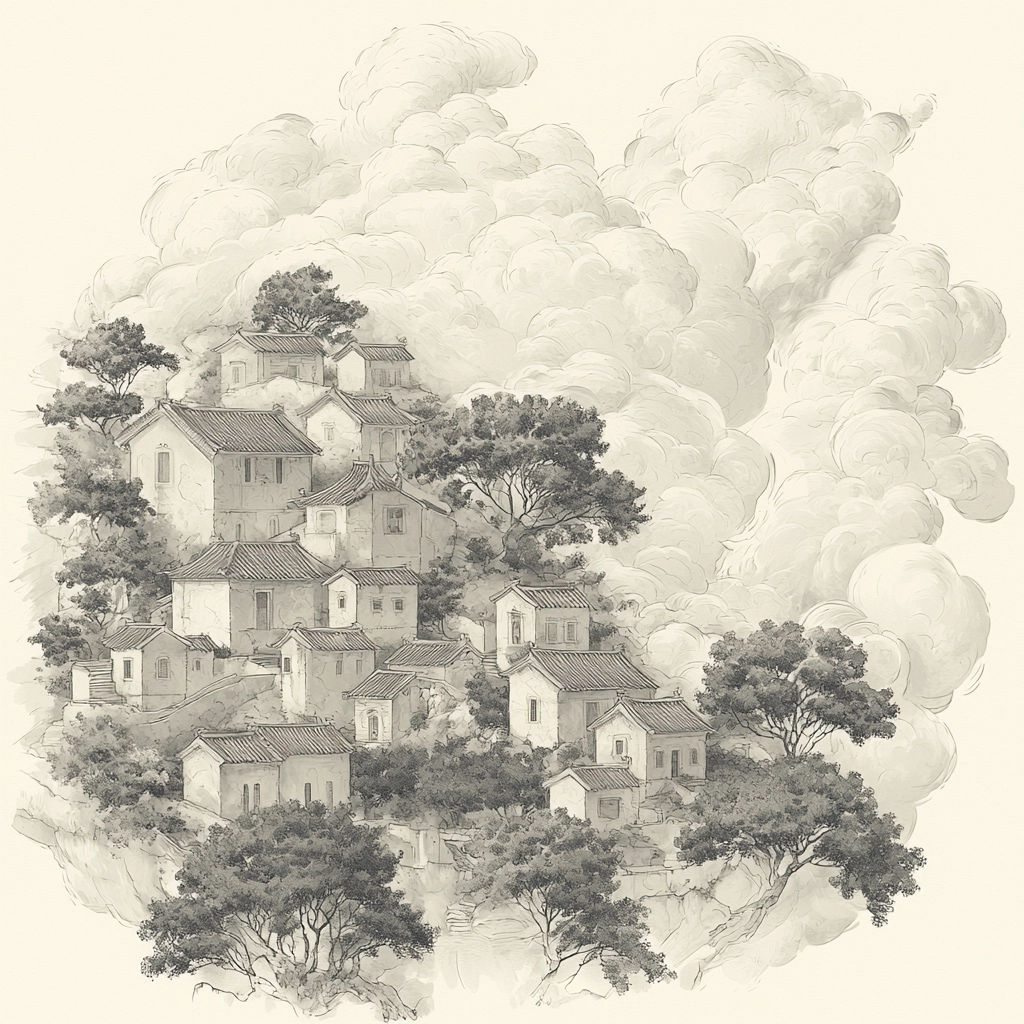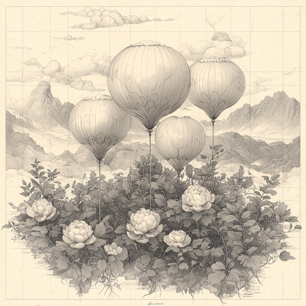 Delicate grayscale compositions blend nature and architecture seamlessly.