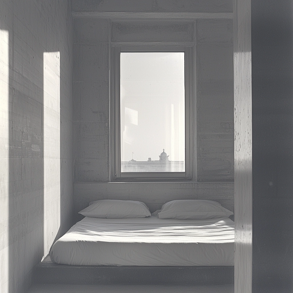 Subtle lighting highlights minimalist architecture in monochrome.