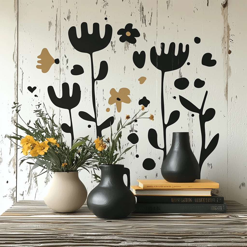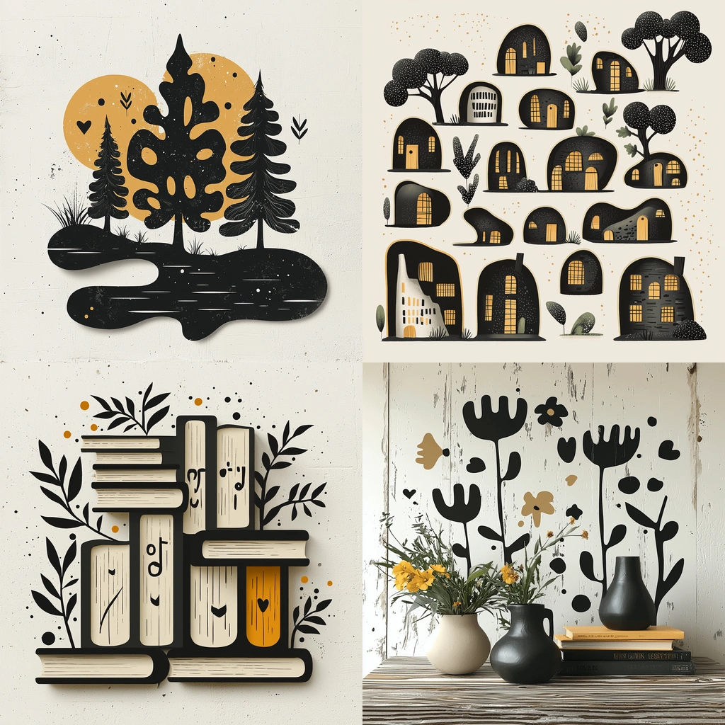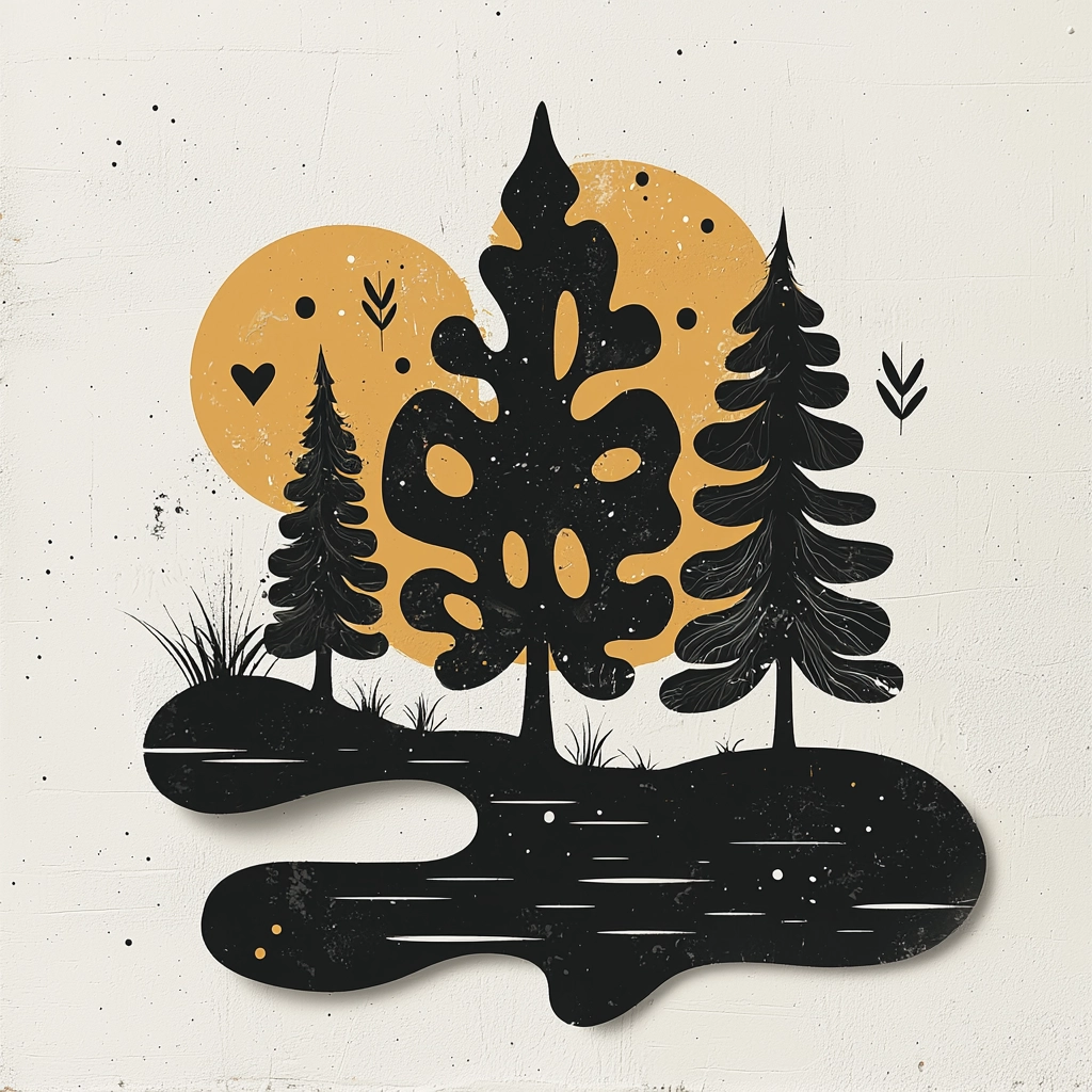 The composition displays stark contrasts with cutout silhouettes and minimalism.