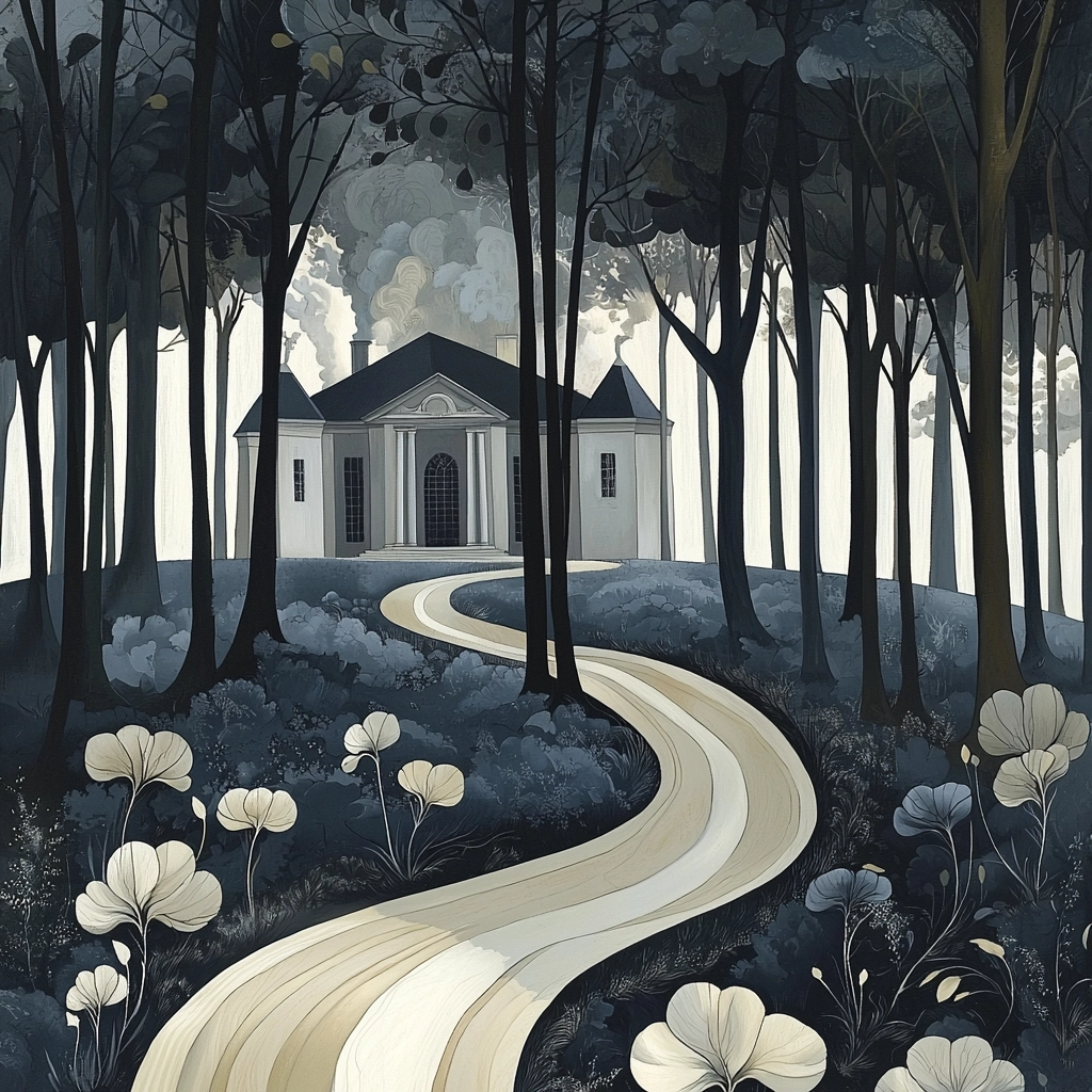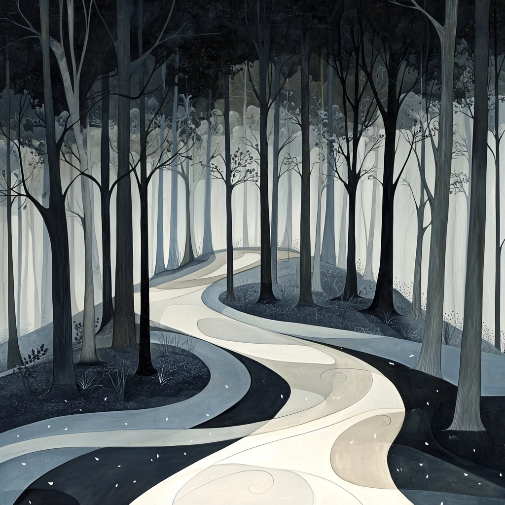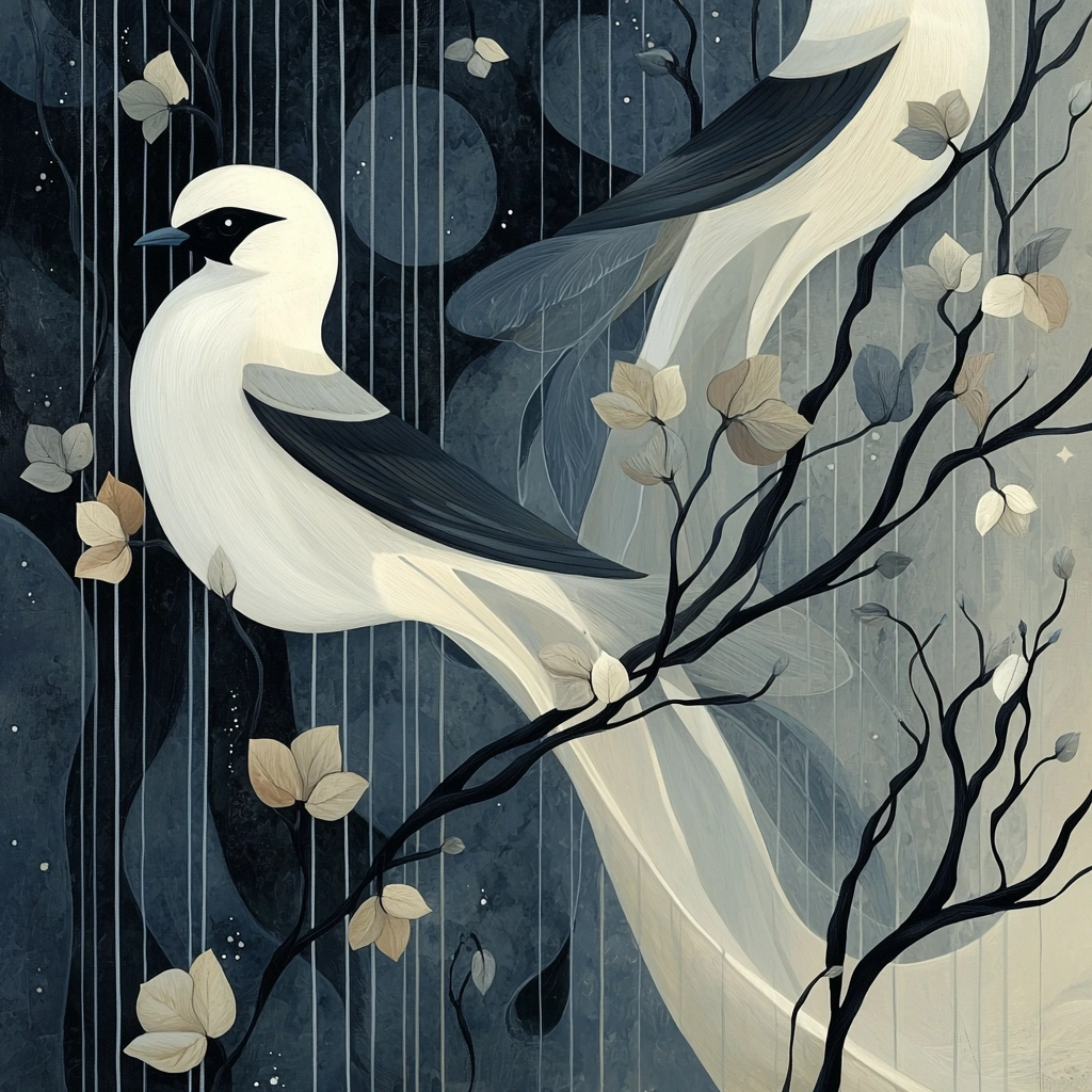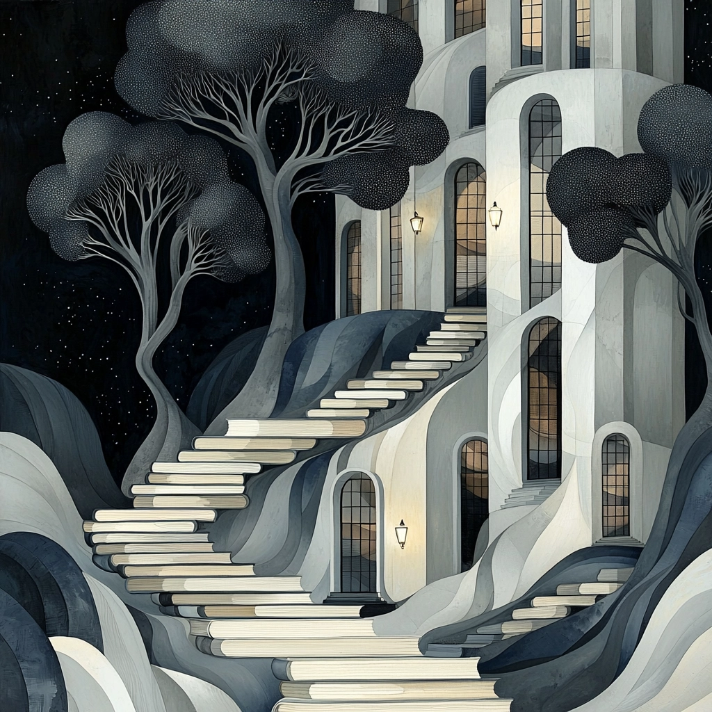 Employs varied lighting for depth, with shadowed areas enhancing the contrast between light and dark. The use of gray and dark blue creates a gentle transition across curved lines and surfaces, giving a subtle tactile sensation through nuanced gradients and soft contours.