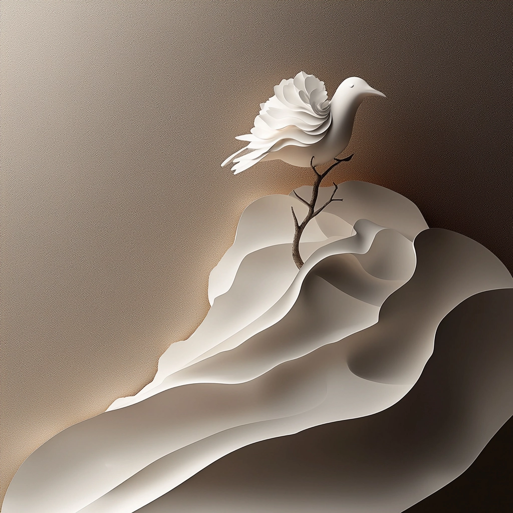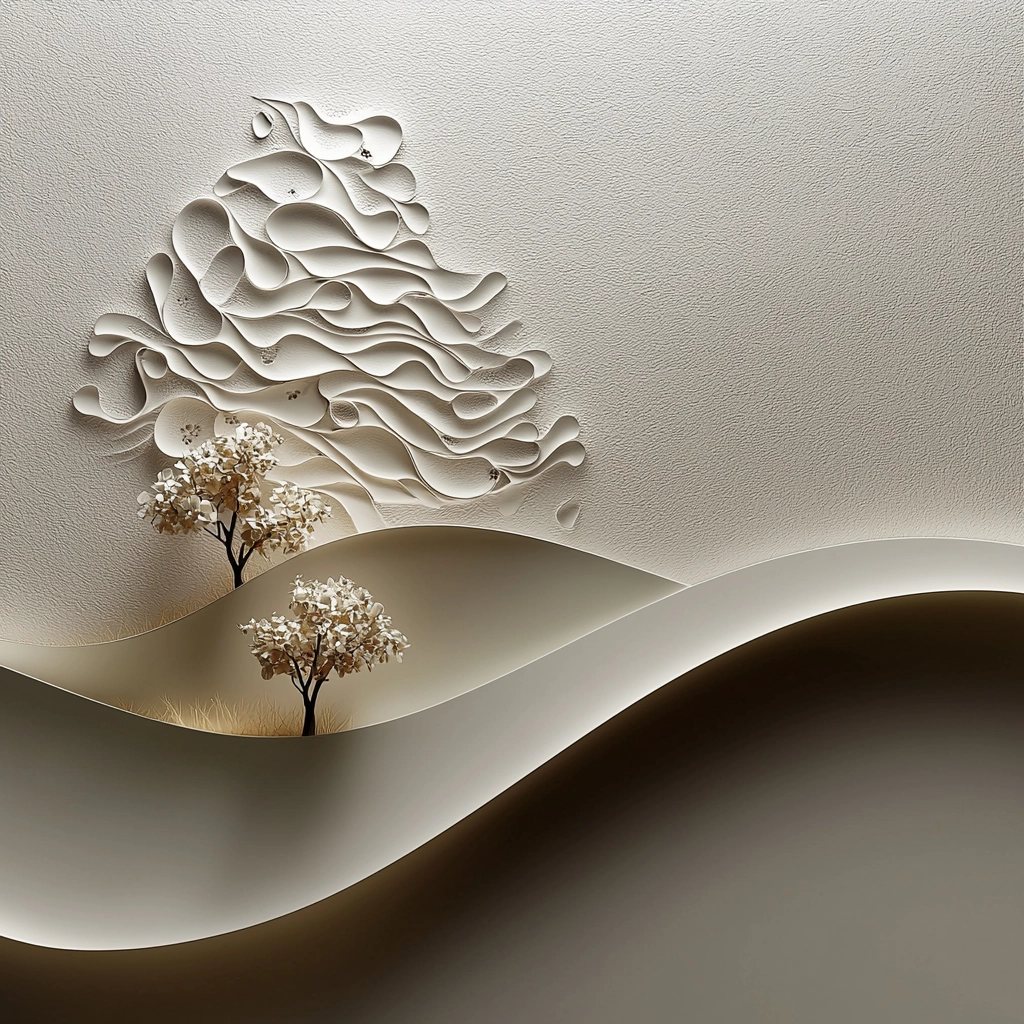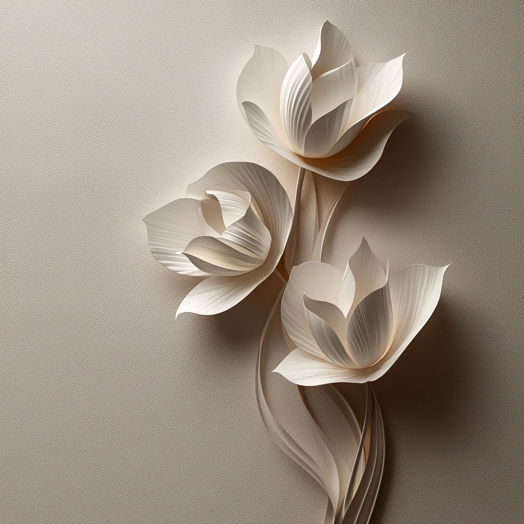 The lighting accentuates gentle shadows, highlighting the paper's crisp edges and smooth surfaces. The forms suggest depth through soft gradients, with light play creating subtle shifts in texture, giving the compositions an elegant and structured appearance.