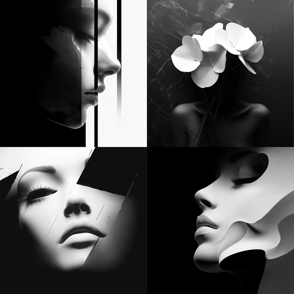 This style emphasizes stark contrasts and minimalist monochrome elements.